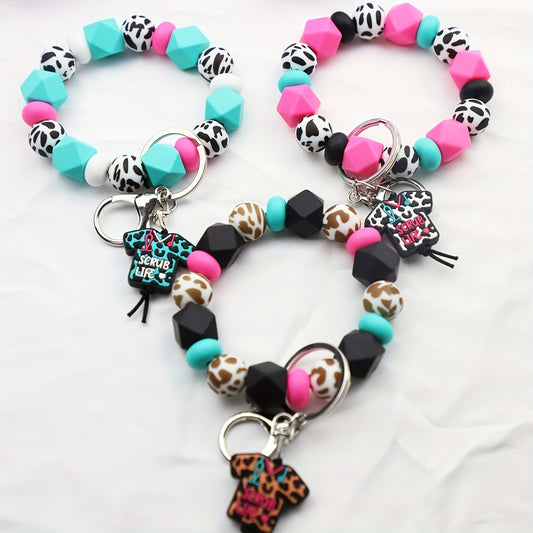 "Nurse Scrub Life" Silicone Bead Bracelet with Keyring and Nurse Uniform Charm - Perfect Gift for Nurse's Day