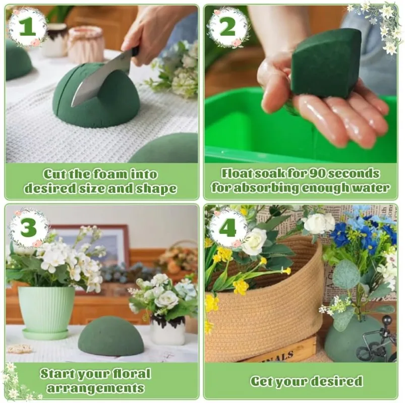 1-10pcs Green Floral Foam Half Ball Green DIY Dry Artificial Flower Foam Block for Arrangement Birthday Wedding Decoration