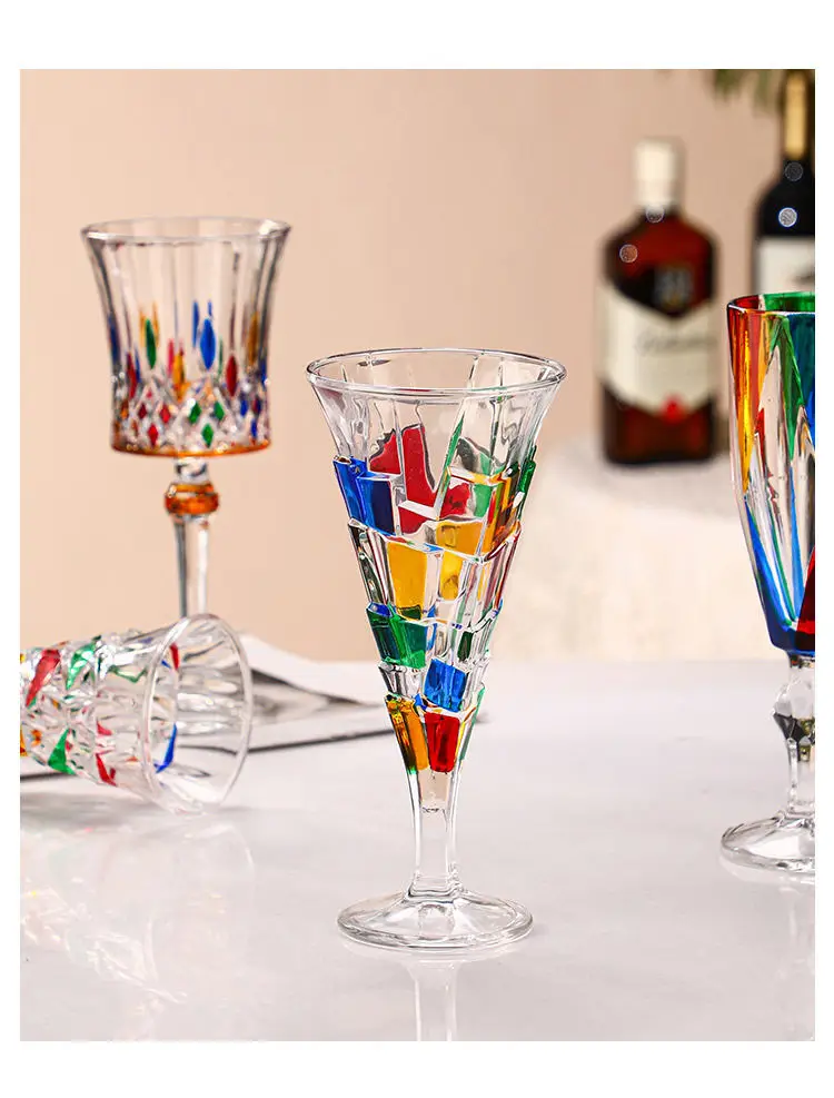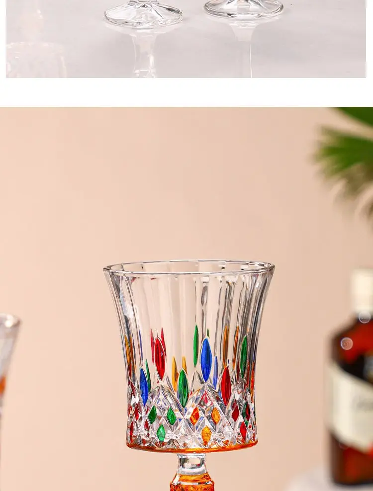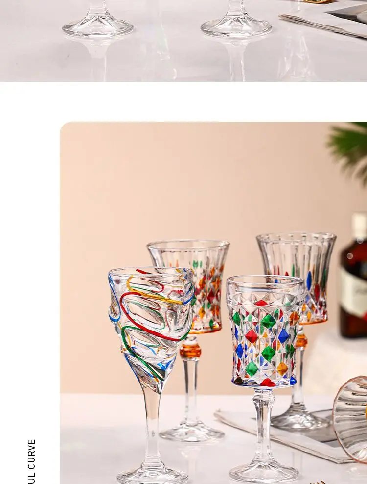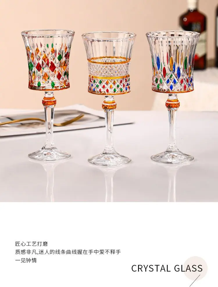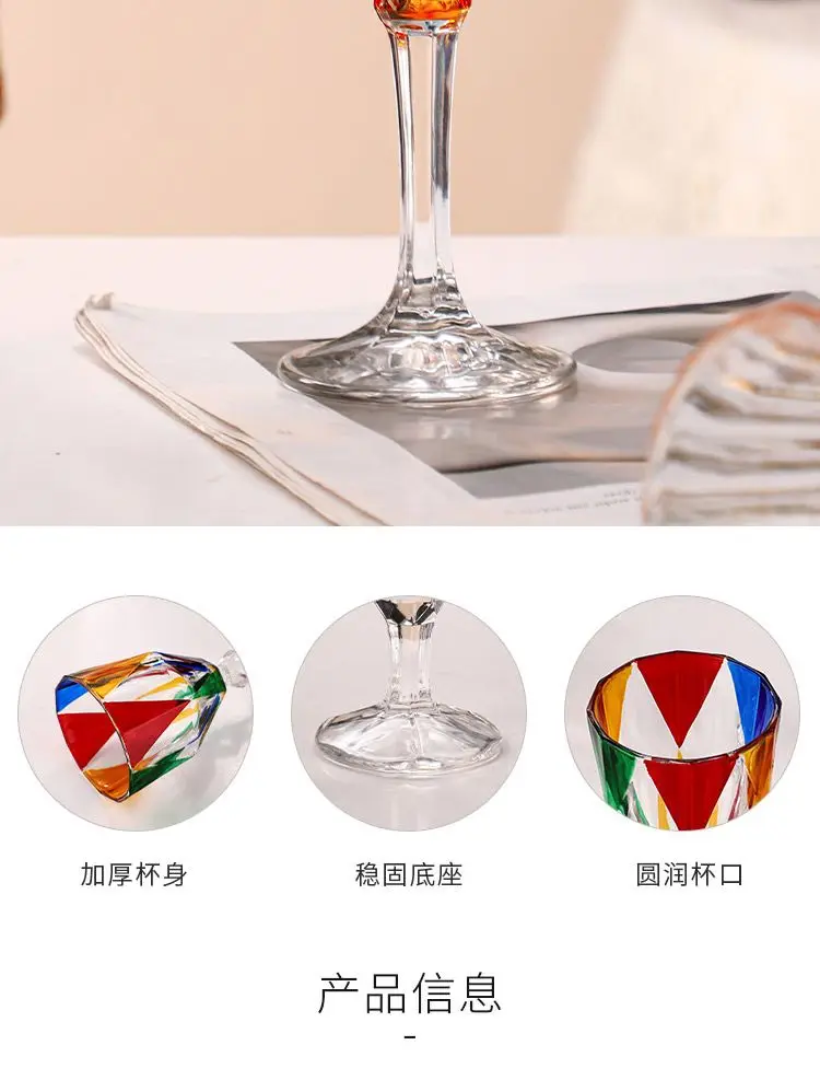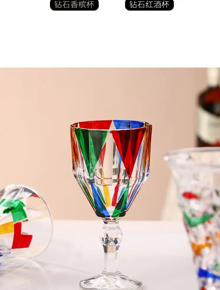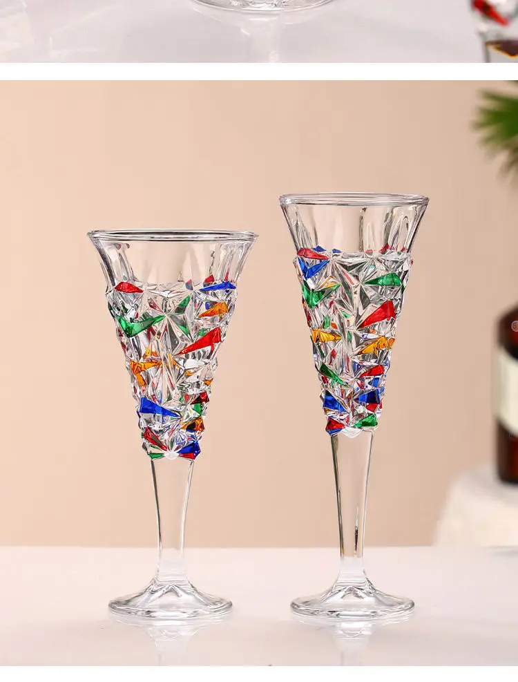 1/2pcs Hand Drawn Diamond Carved Crystal Glass Cup Rainbow Diamond Gloss Champagne Cup Thickened Design Red Wine Tall Glasses