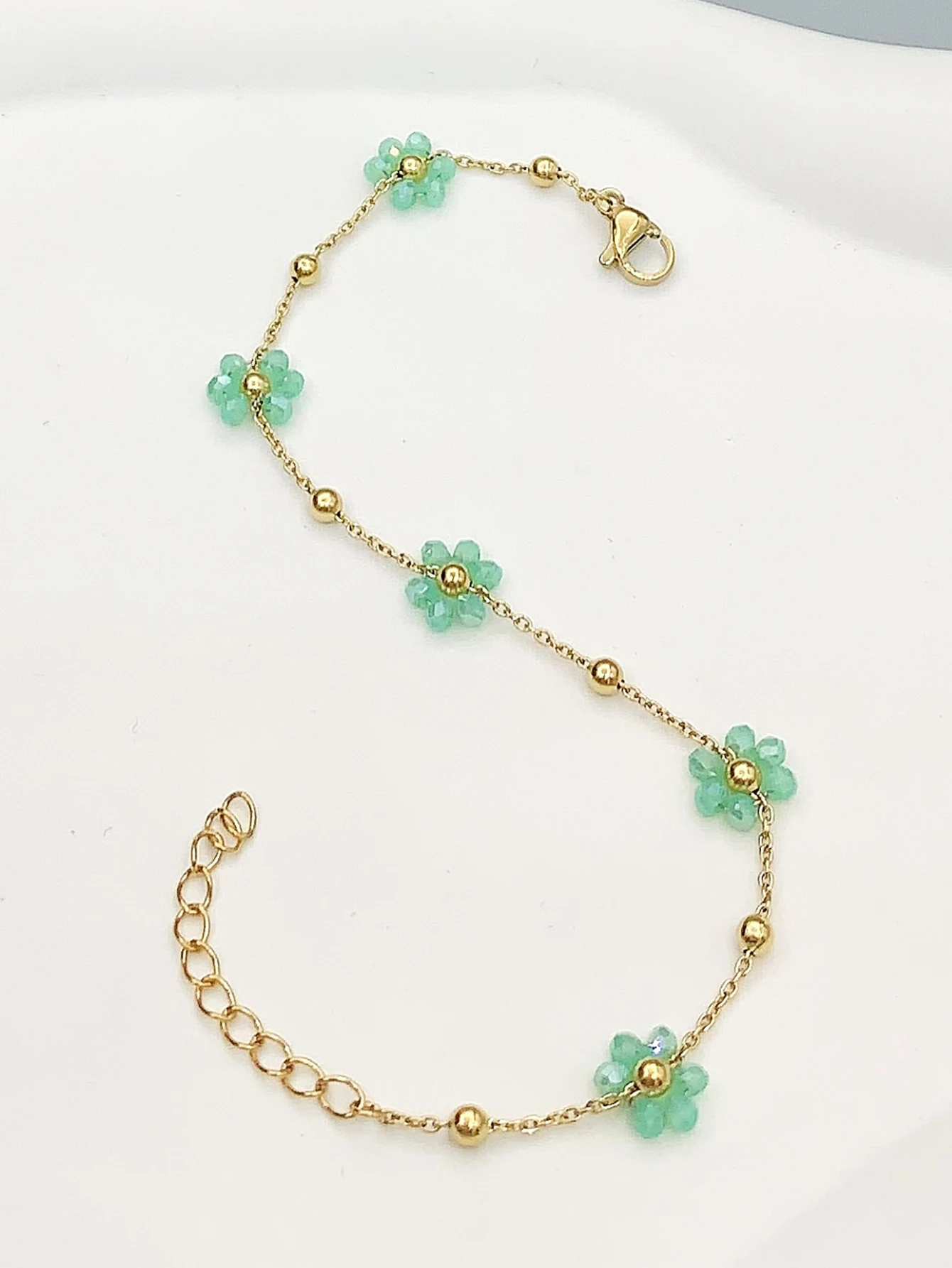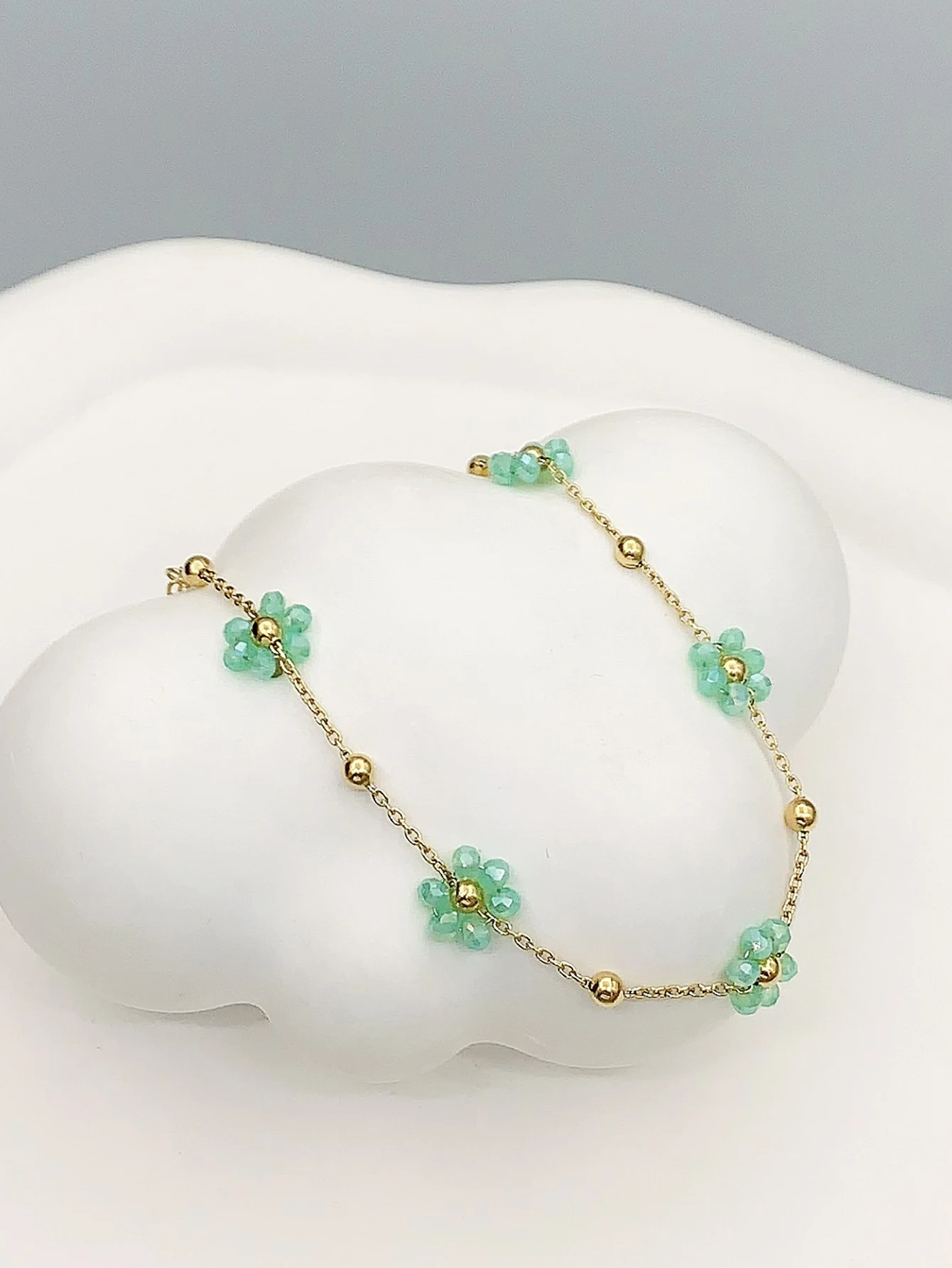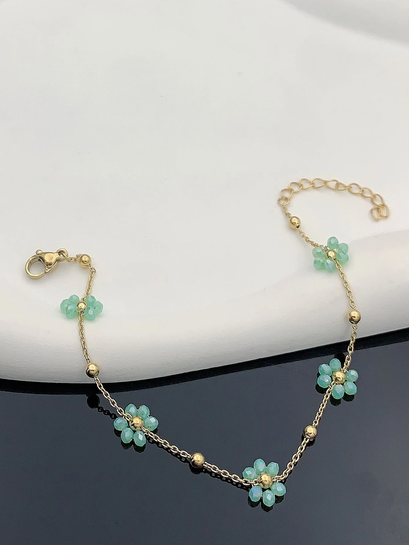 1 fashion girls new green small flower beade bracelet birthday gift Dance party Back-to-school season wedding season Bozmian