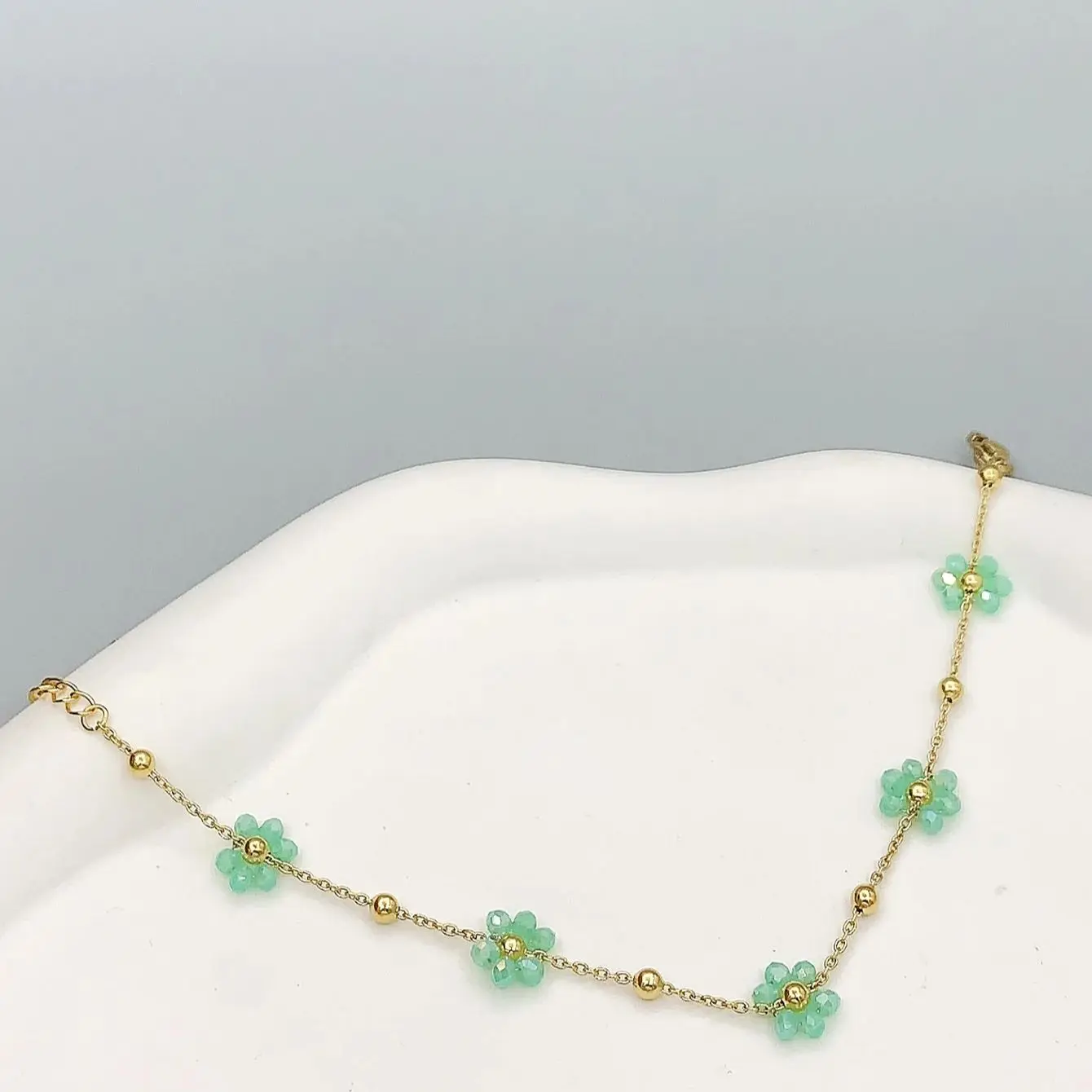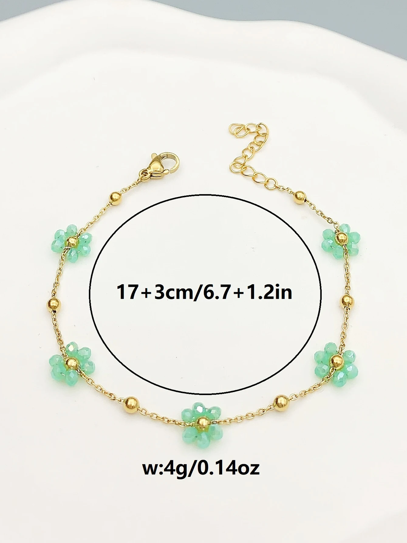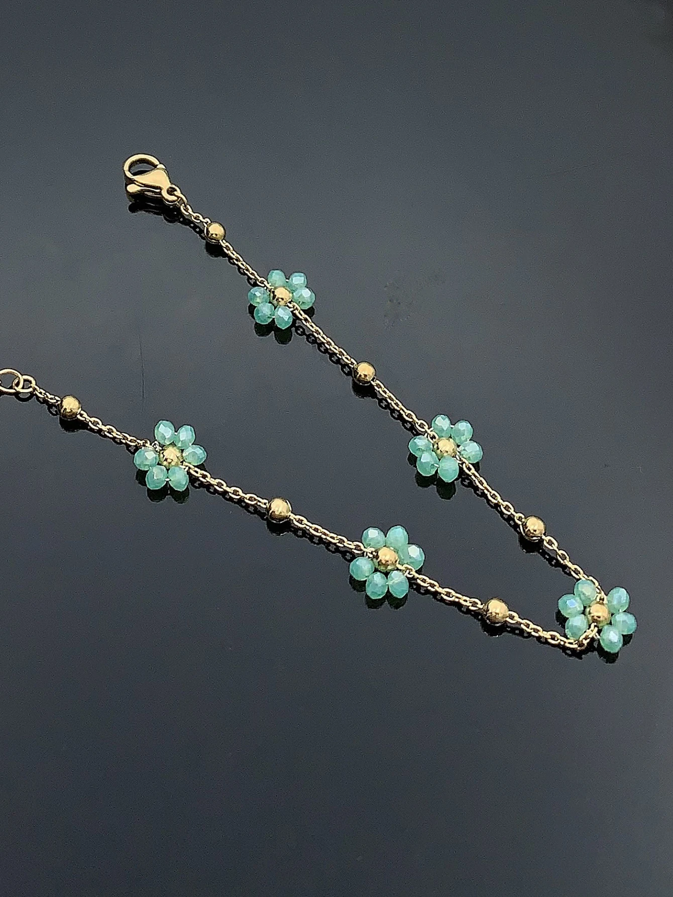1 fashion girls new green small flower beade bracelet birthday gift Dance party Back-to-school season wedding season Bozmian