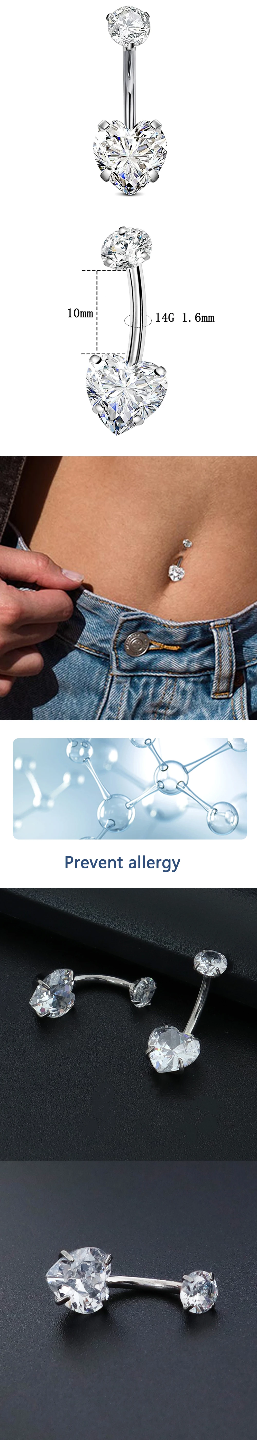 【Name】Heart Shaped Zirconia Belly Button Nail
