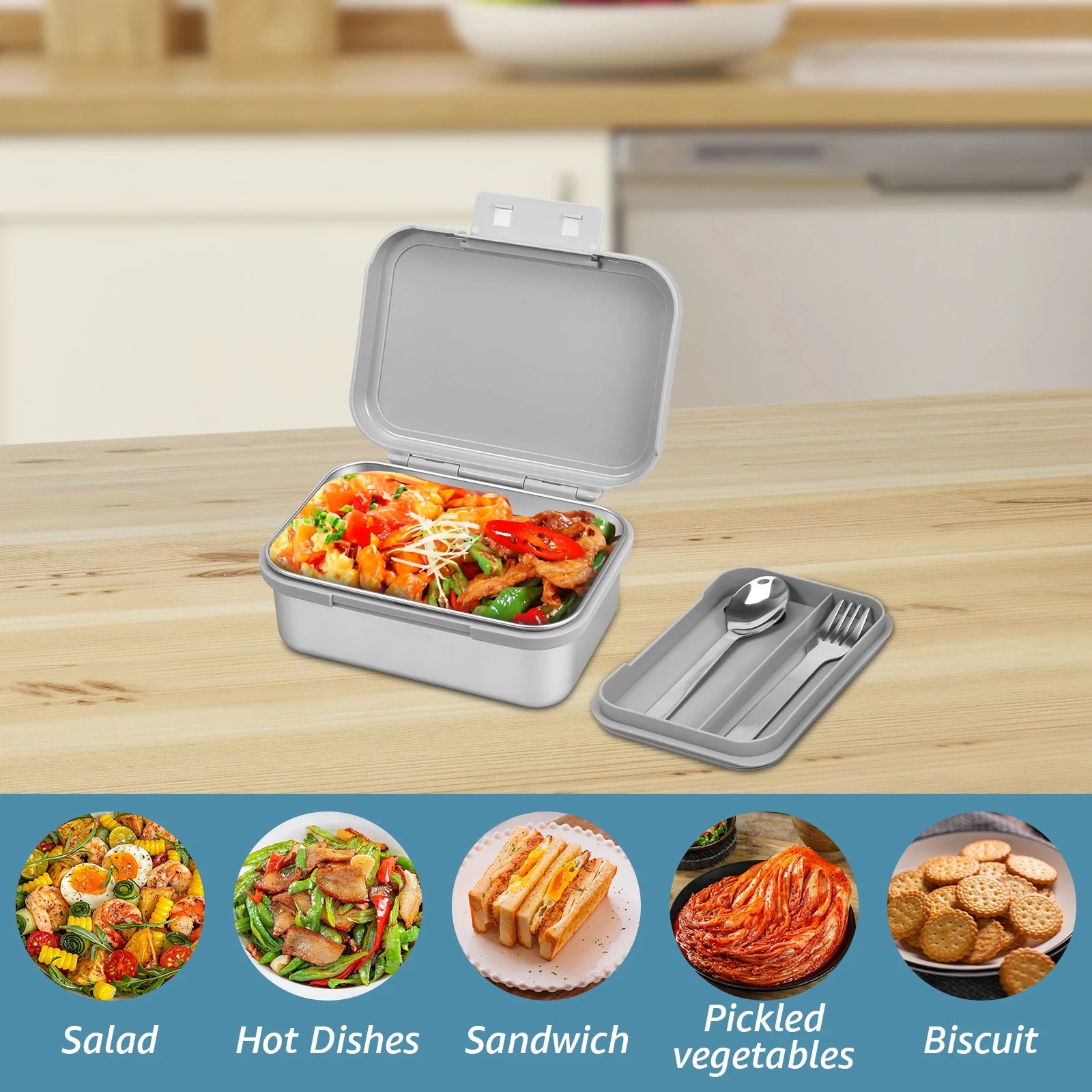 1 x Stainless Steel Food Box;1 x Fork;1 x Spoon