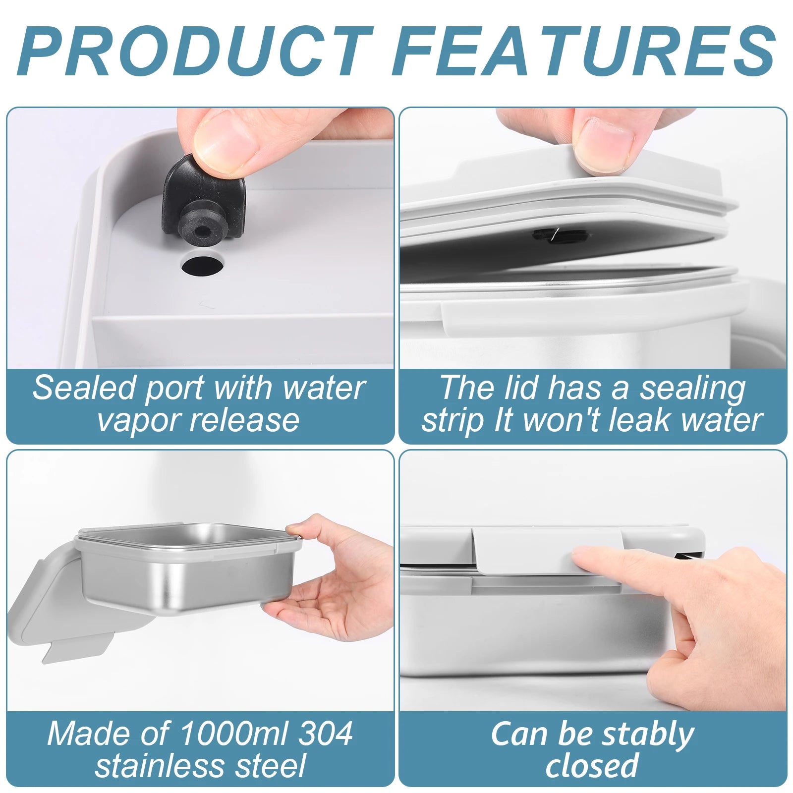 1000ml Lunch Box Stainless Steel Bento Boxes with Fork Spoon Leakproof Meal Food Container for Picnic Office School Traveling