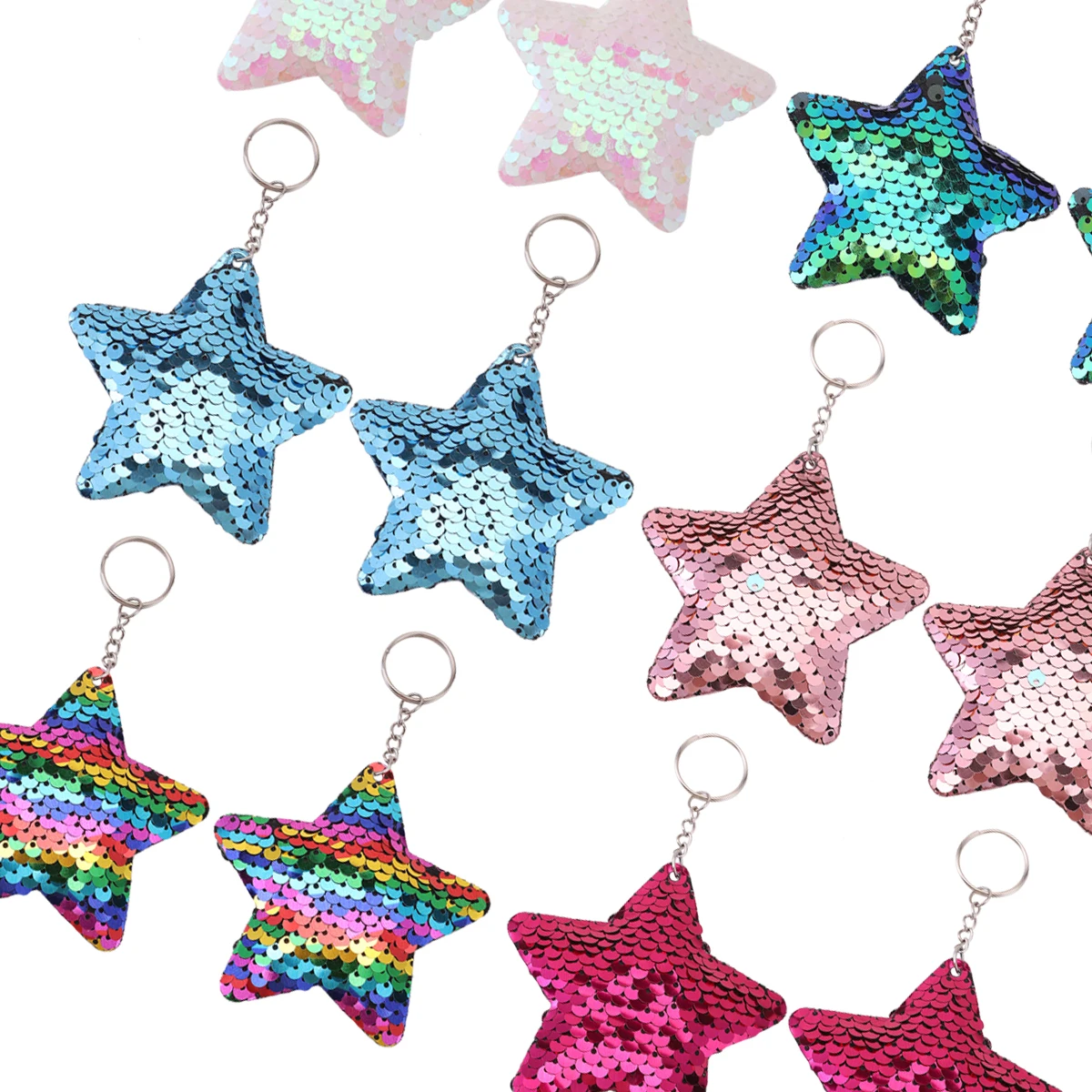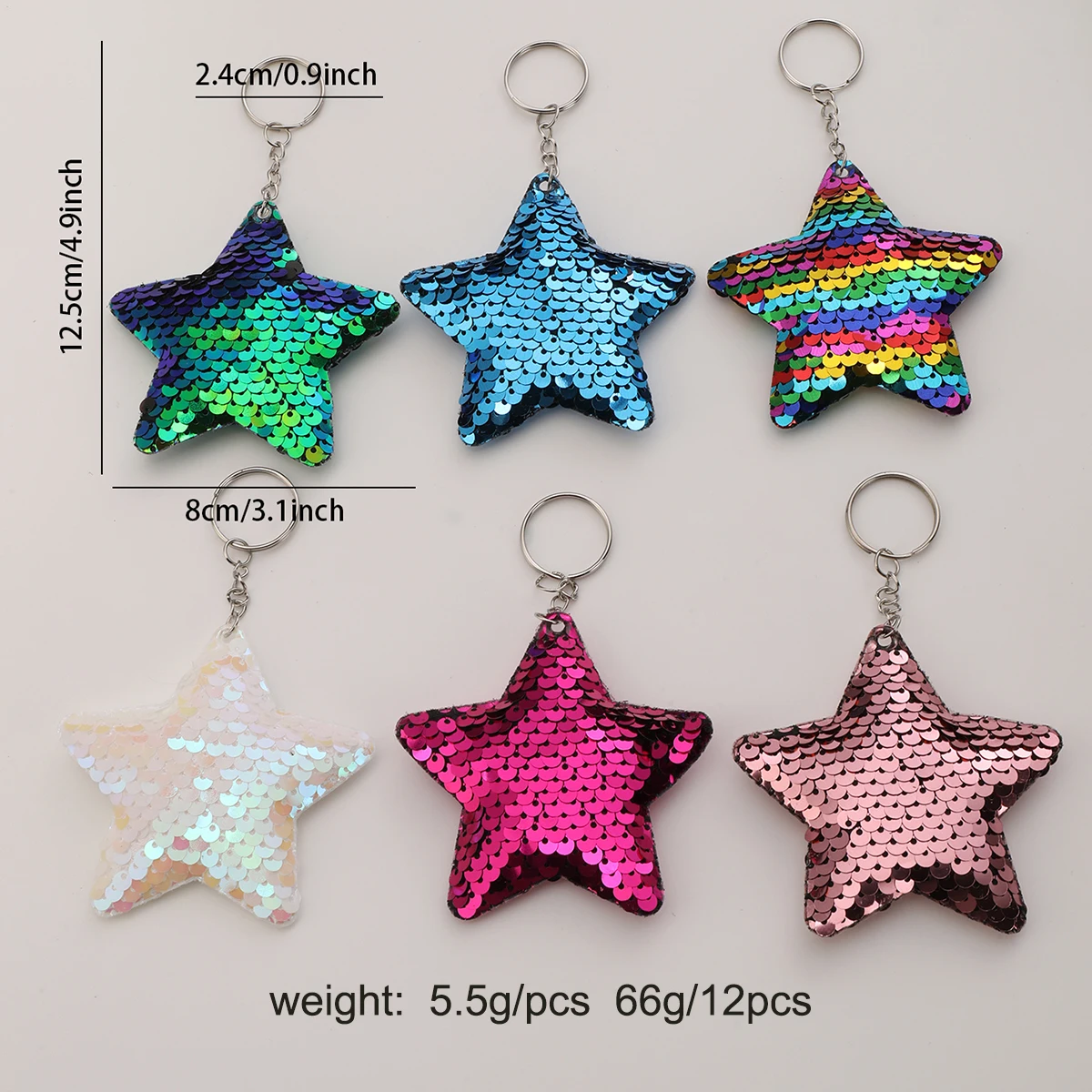 12pcs Flip Sequin Stars Keychains, Sparkling Key Rings For Boys & Girls, Decoration Wallet Bag Backpack Charms Party Favors