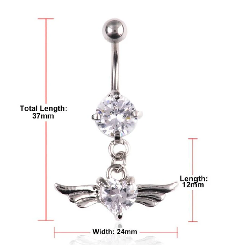 14G Heart Wing Crystal Navel Belly Button Ring Barbell Body Piercing Jewelry