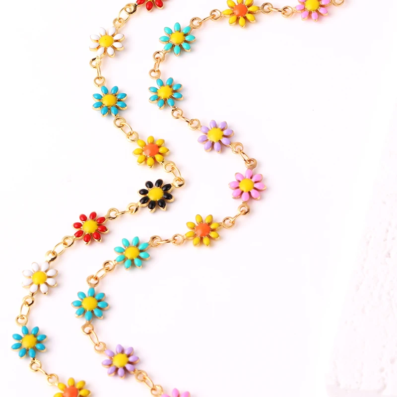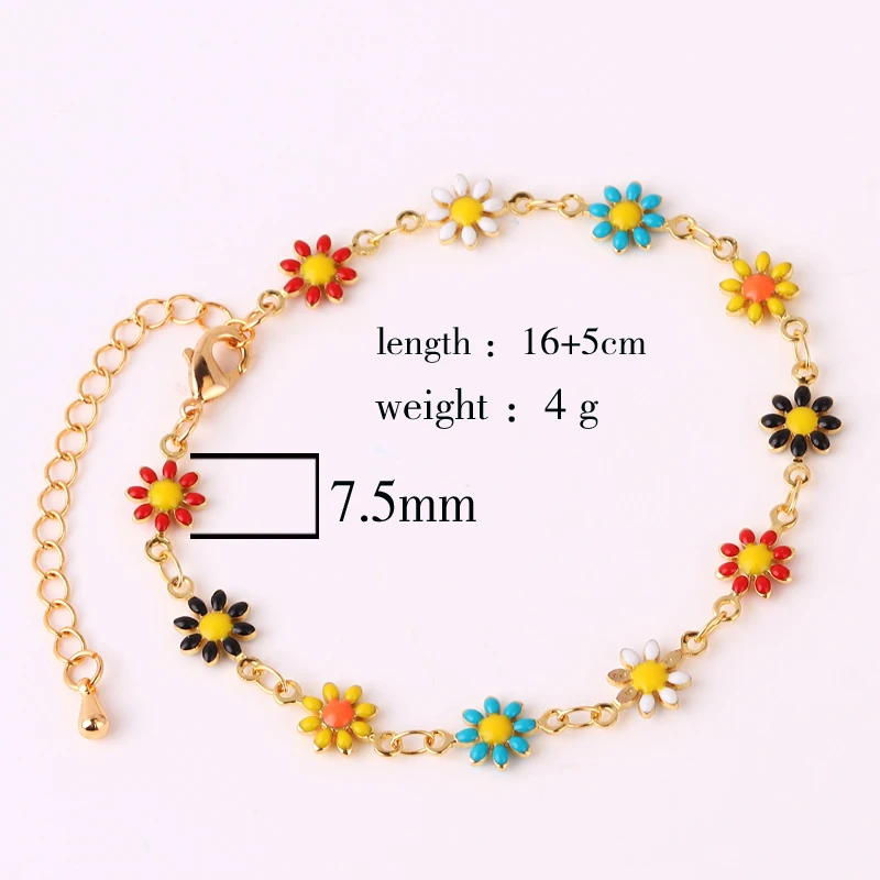 16+5cm Daisy Choker Girl Bracelet For Women Enamel Colorful Jewelry Flower Tennis Chain Boho Party Gift