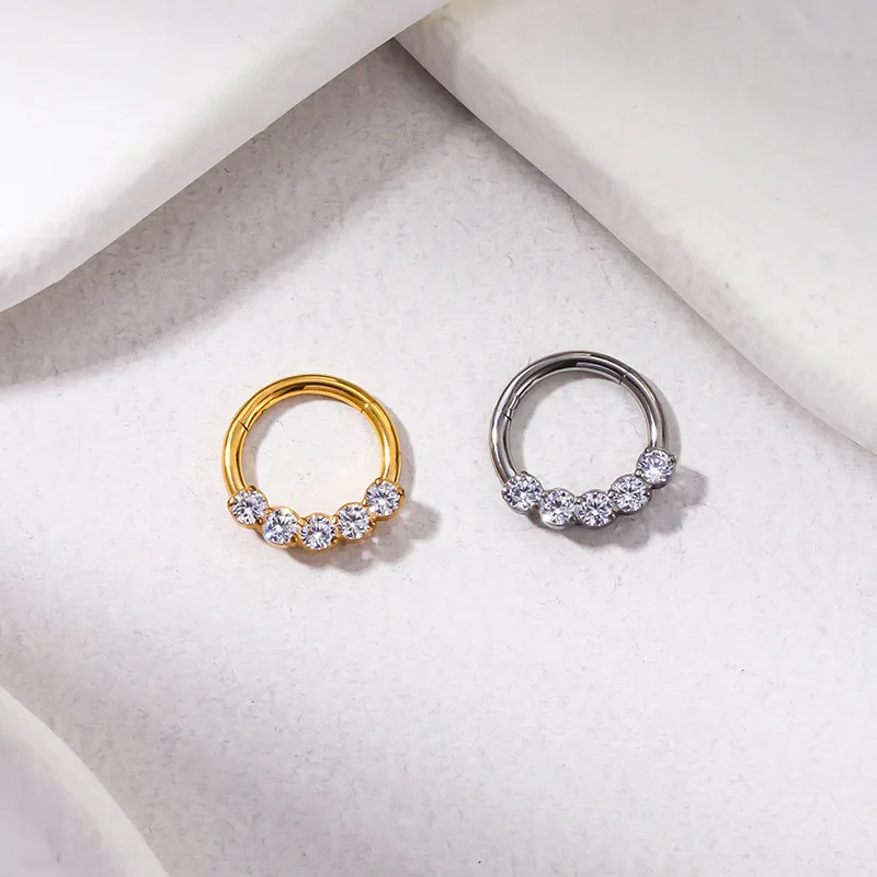 1PC ASTM F136 Titanium Piercing Nose Ring Septum Earring Hinged Segment Hoop CZ Helix Conch Cartilage Tragus Piercing Jewelry