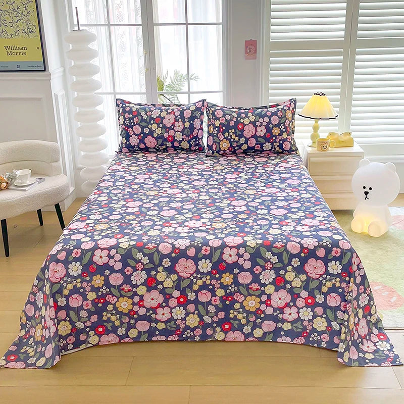 1pc Bed Sheet Flower Printed Top Sheets Single/Queen/King Bedsheet for Double Beds Floral Flat Bed Sheet(without pillowcase)