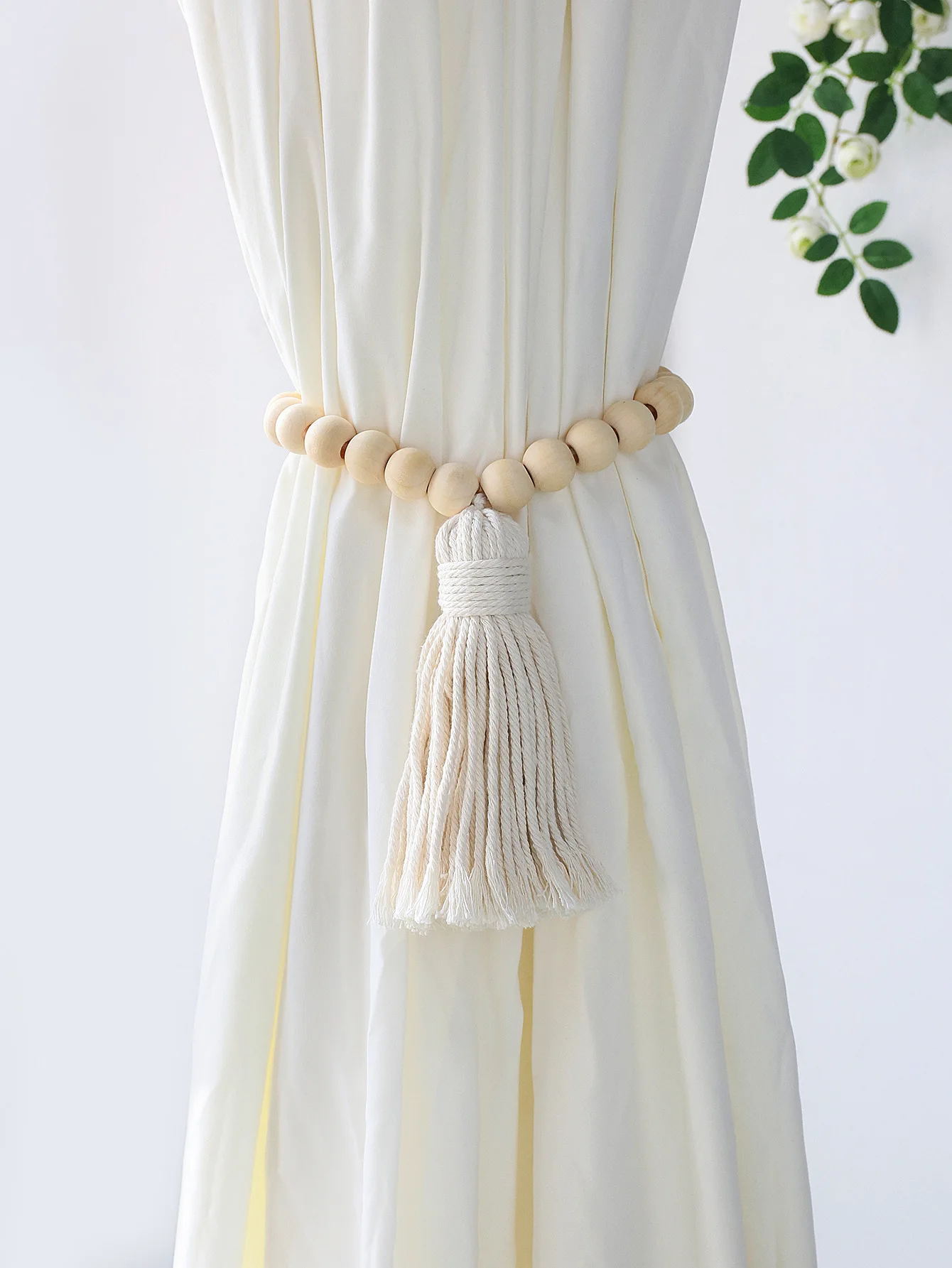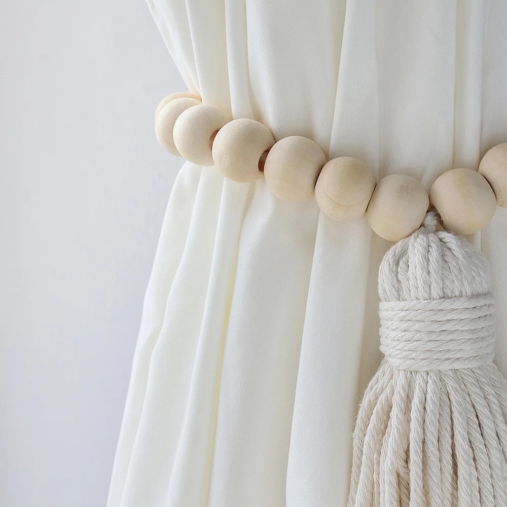 1pc Curtain Buckle Straps Hand-woven Wooden Beads Tassel Fresh Curtain Buckle Home Decoration Curtain Tieback Room Accessories