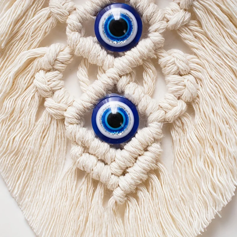 1pc Evil Eye Tapestry With Tassel, Cotton Rope Woven Wall Hanging Tapestry Handmade Boho Decor, For Bedroom Office Living Room H