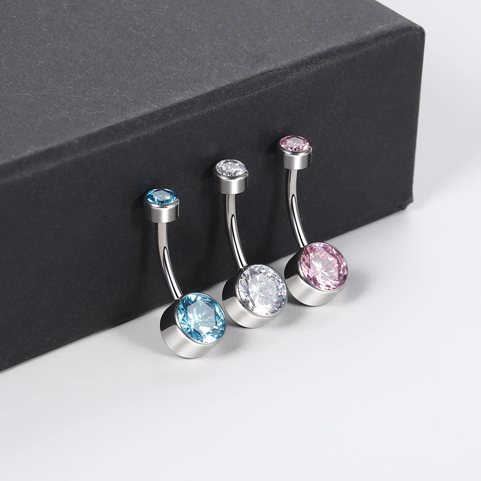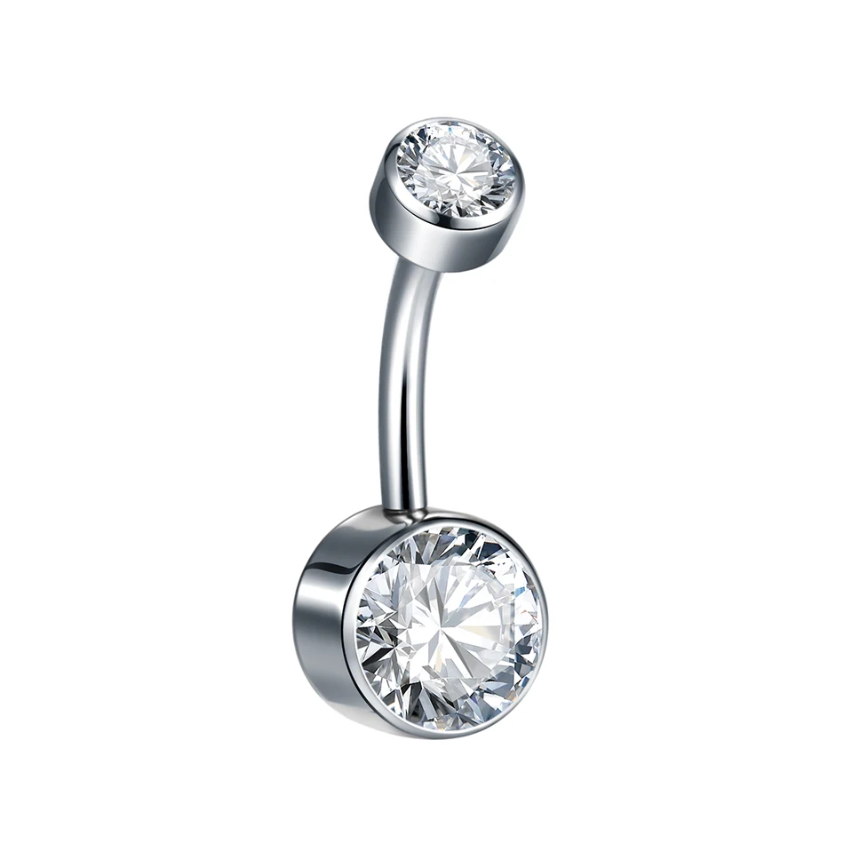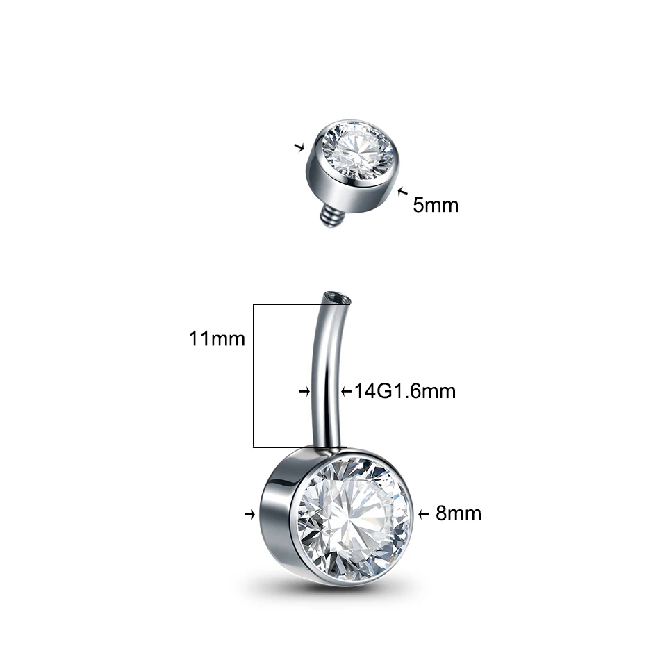 1PC ASTM F136 Titanium Belly Button Rings 10mm 12mm with Round CZ Internally Threaded Navel Rings Belly Bars Body Piercings