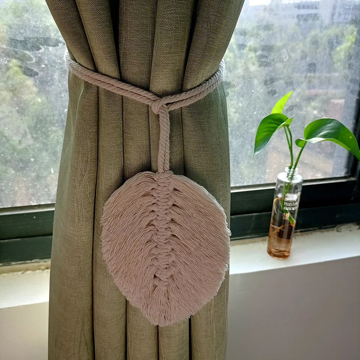 1Pc Leaf Macrame Curtain Tie Backs Hand-Woven Cotton Tassel Curtain Straps Tie Decorative For Living Room Boho Decor