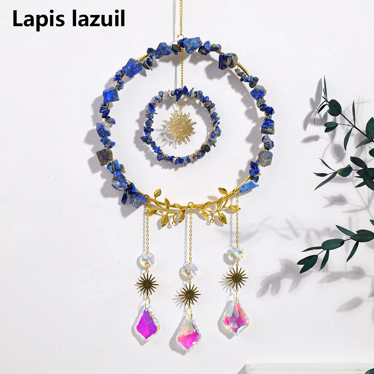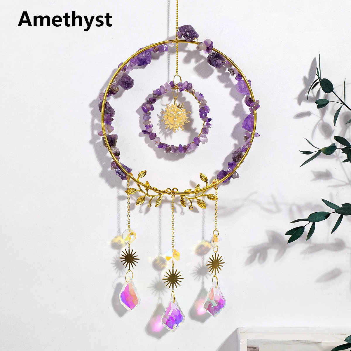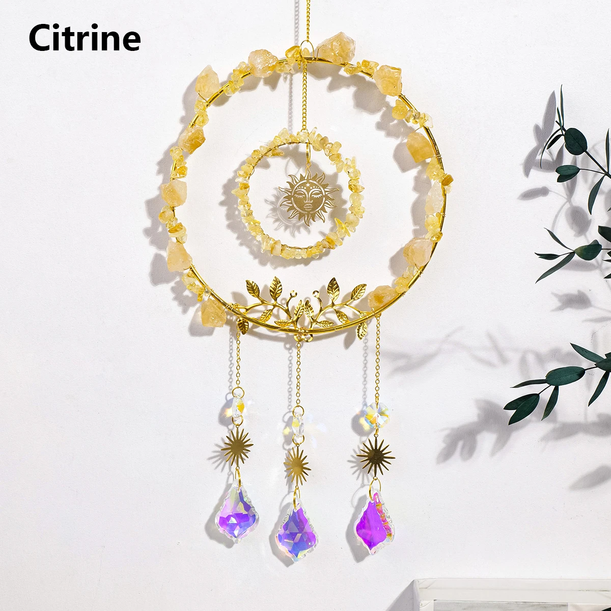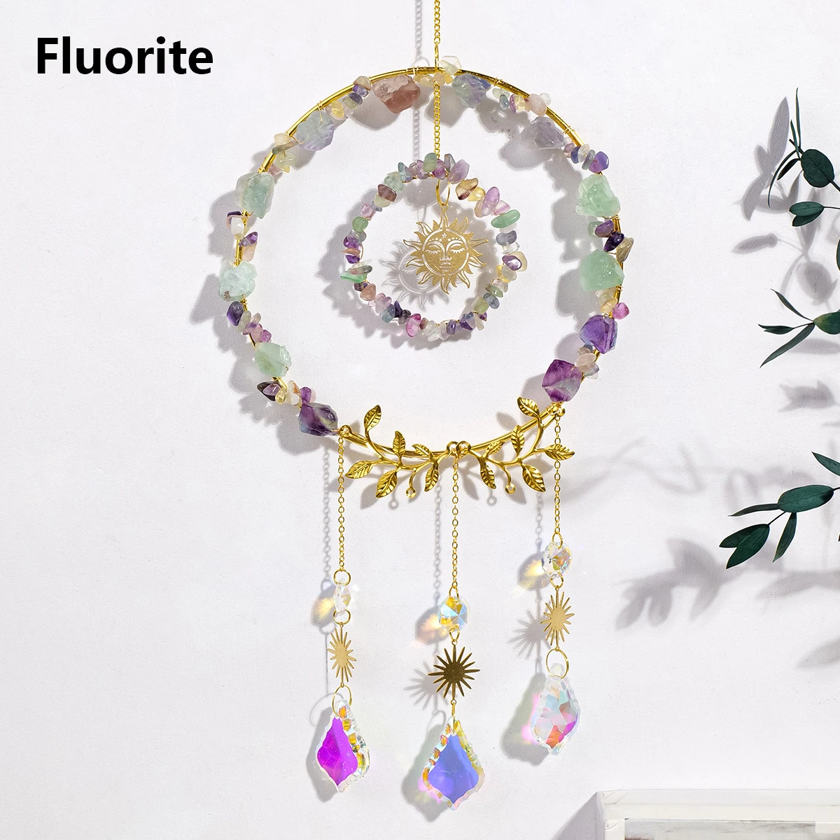 1PC Natural Crystal Pendant Crystal Gravels Annulus Sun Catcher Reiki Gemstone Chips Home Decoration