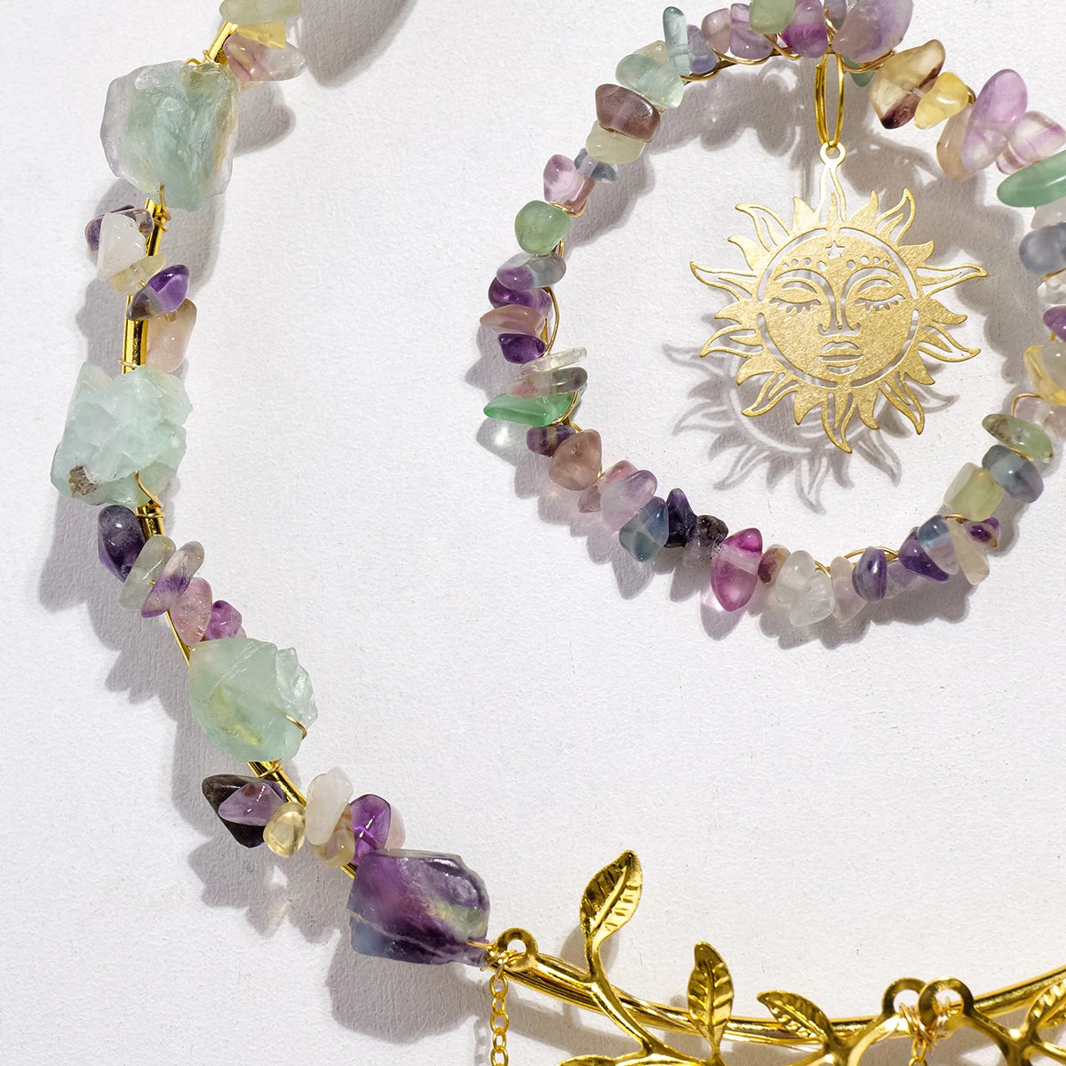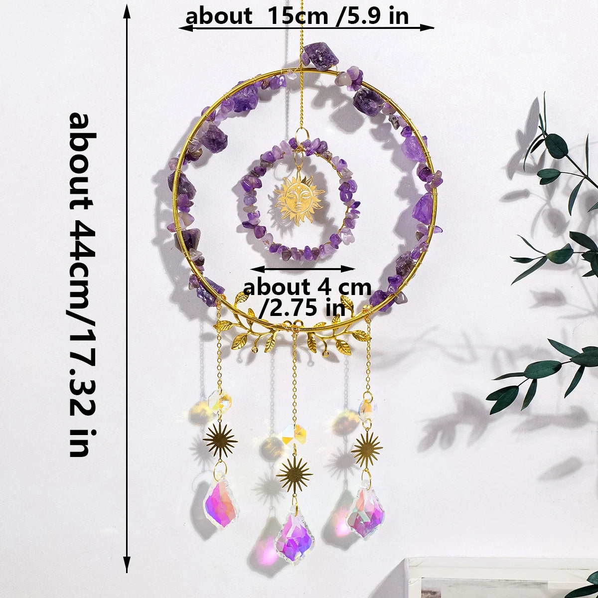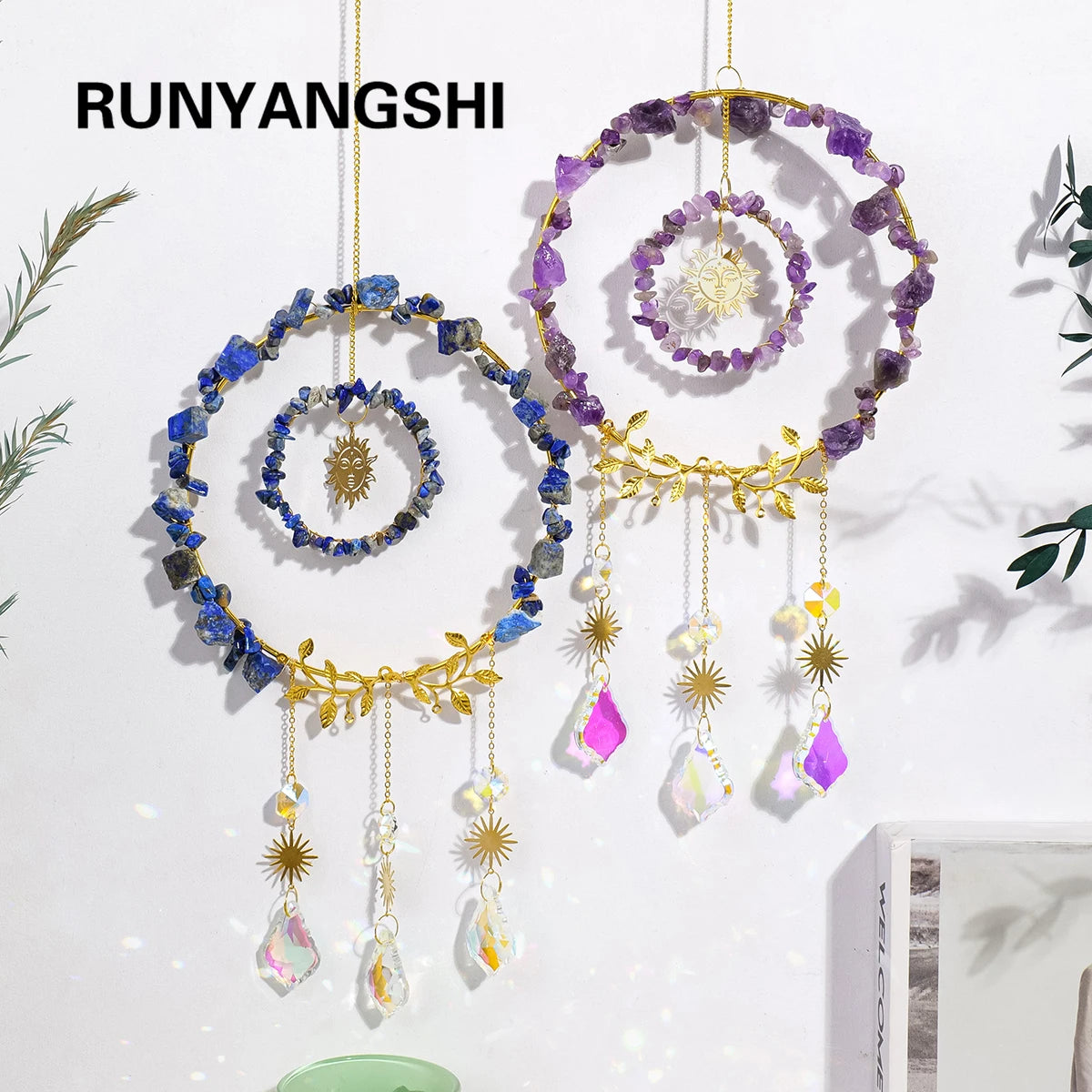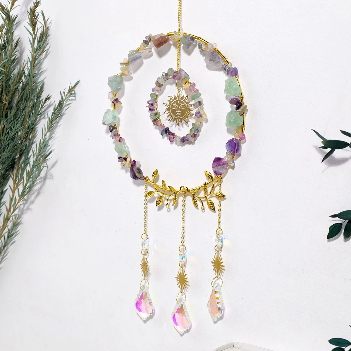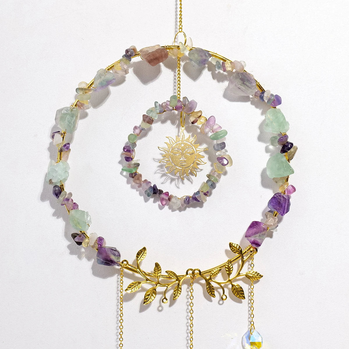 1PC Natural Crystal Pendant Crystal Gravels Annulus Sun Catcher Reiki Gemstone Chips Home Decoration