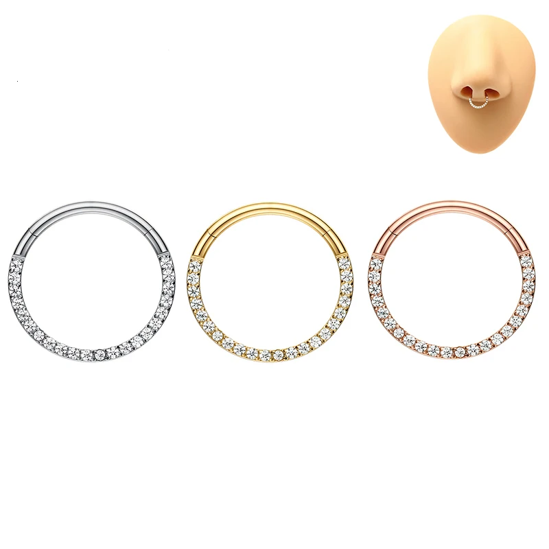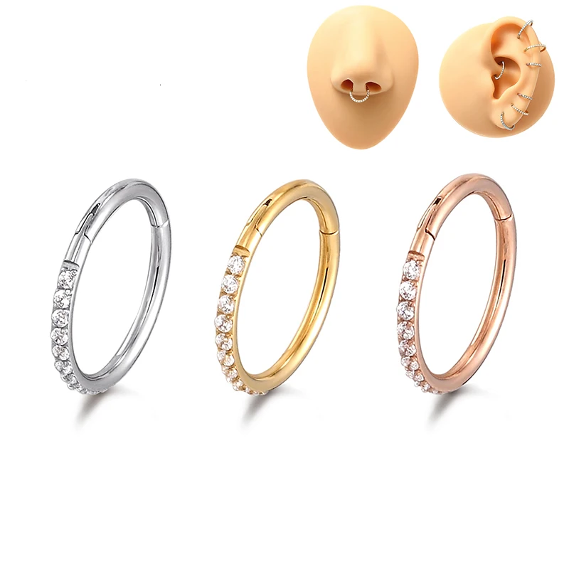 1PC Piercing Jewelry Nose Ring Hinge Clicker Nose Septum Stainless Steel Piercing Daith Helix Cartilage Earring Rook Hoop CZ 16G