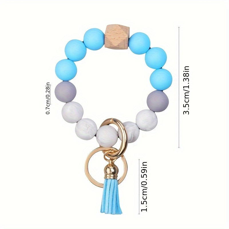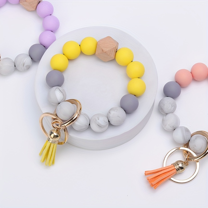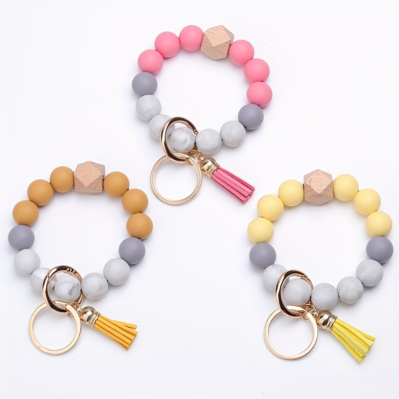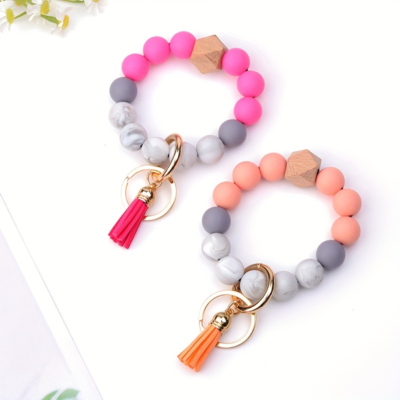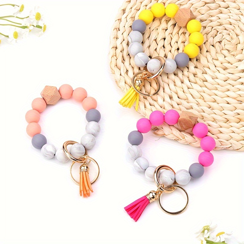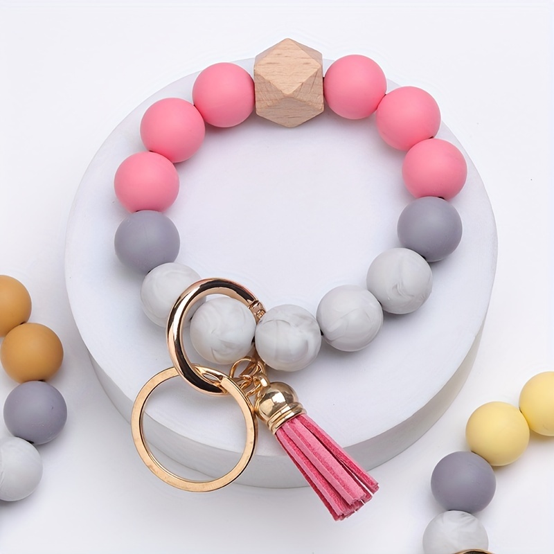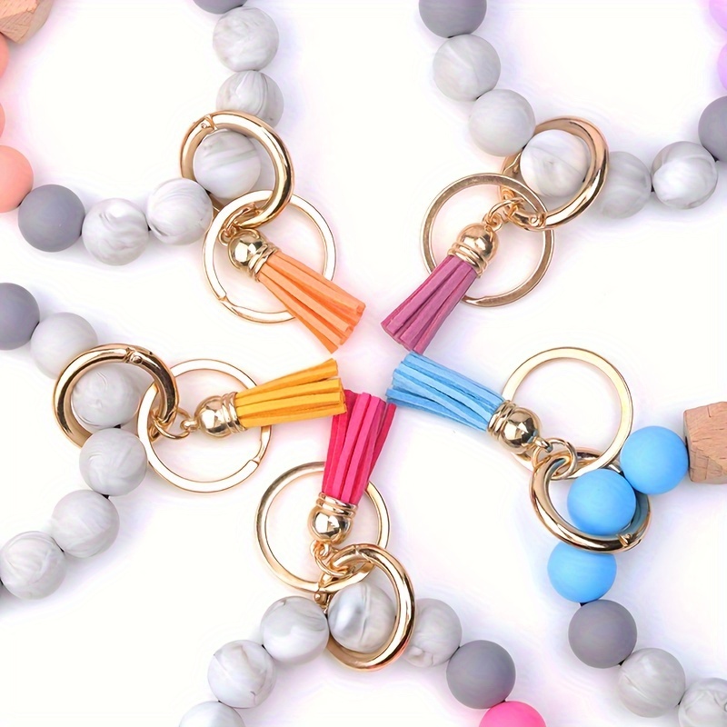 1pc, Silicone Beaded Keychain For Women Bracelet Fashion Vintage Boho Car Keychain Leather Tassel Beaded Bracelet Key Ring Bag Pendant Halloween Thanksgiving Gift Party Small Gift For Men And Women The Same Style