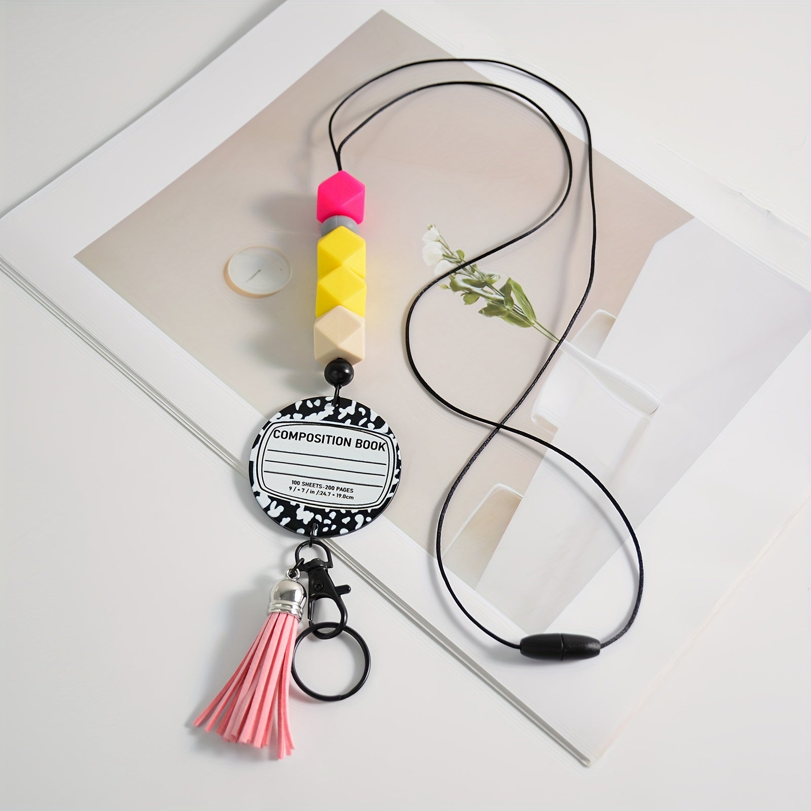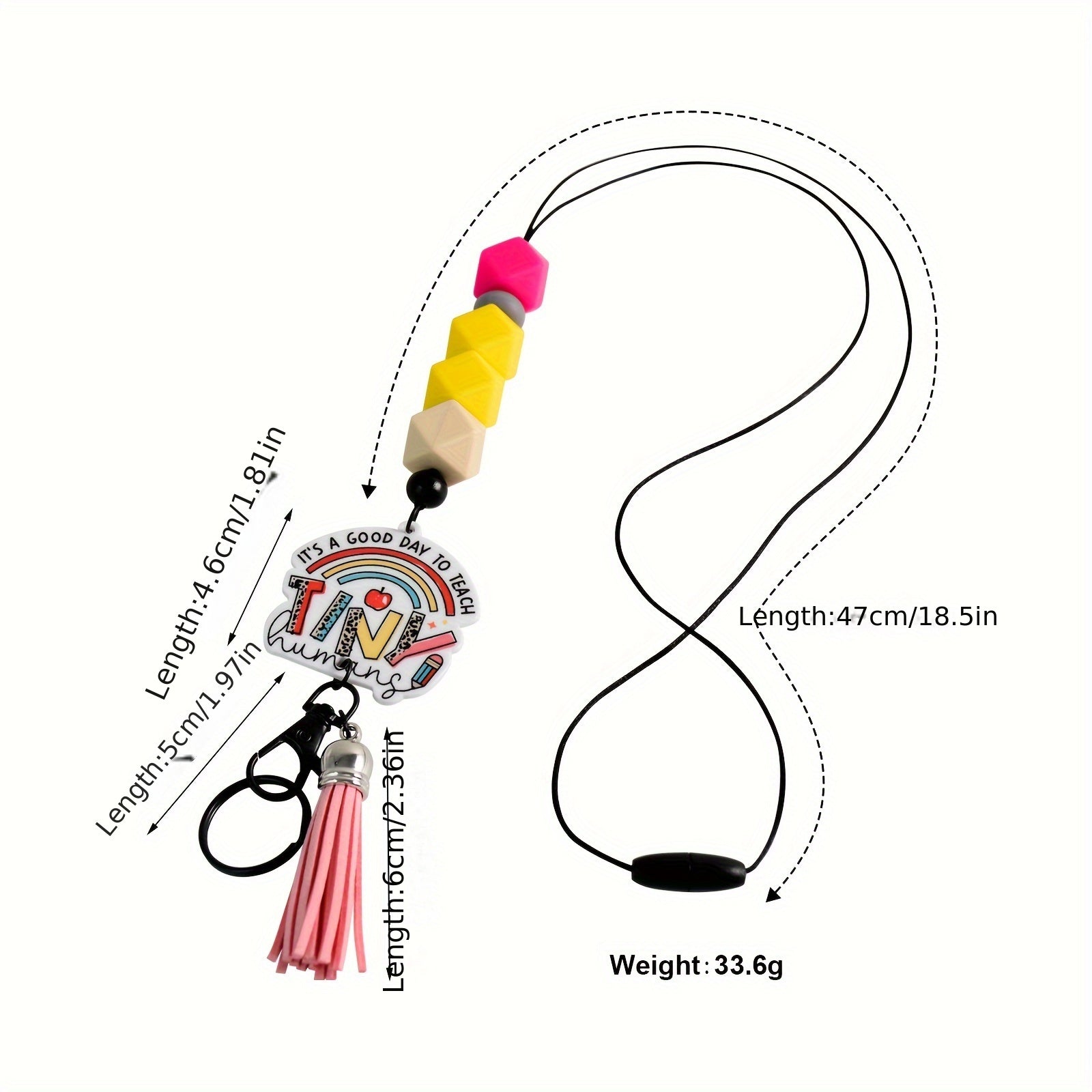Hemasa Silicone Beaded Lanyard Keychain with Tassel Pendant for Teachers /Bohemian Acrylic Colorful Badge Holder