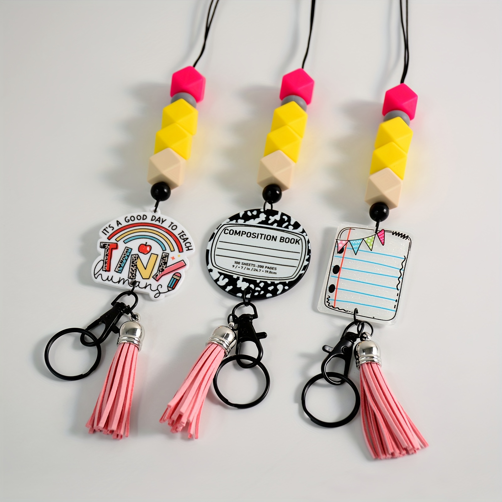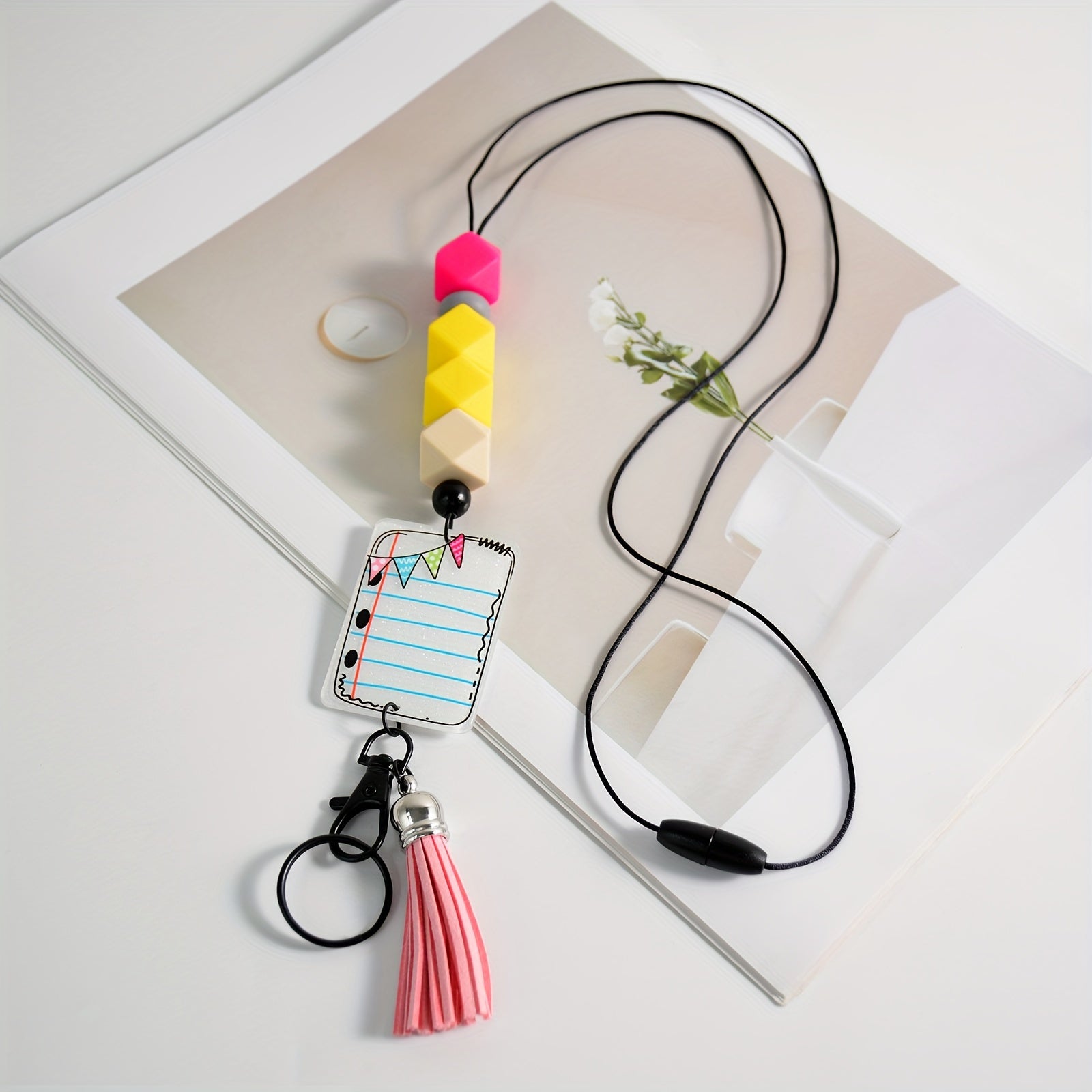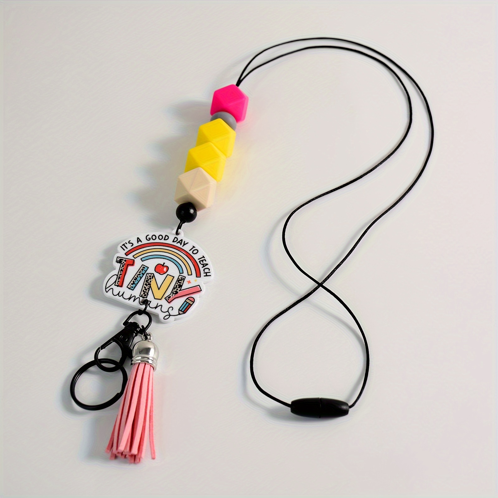 1pc Silicone Beaded Lanyard Keychain with Tassel Pendant for Teachers - Bohemian Acrylic Colorful Badge Holder - Ideal Graduation Gift for Women
