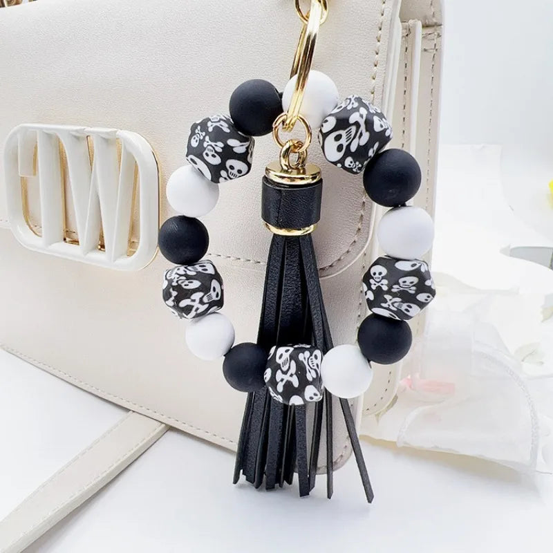 - : The key chain is made of silicone beads, metal keyring and leather tassel, the silicone beads are smooth and elastic, easy to wear on the wrist, soft and comfortable to wear, suitable for most women's wrists.