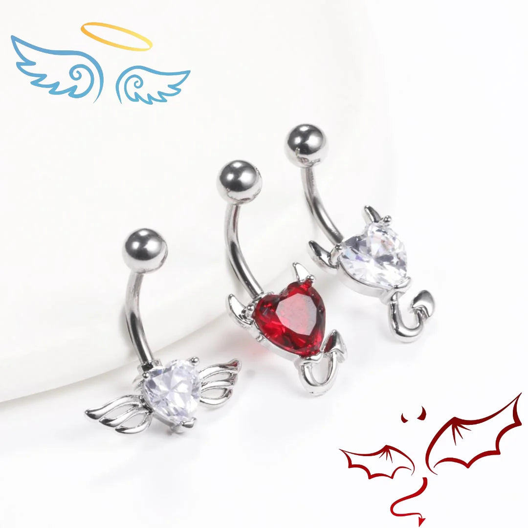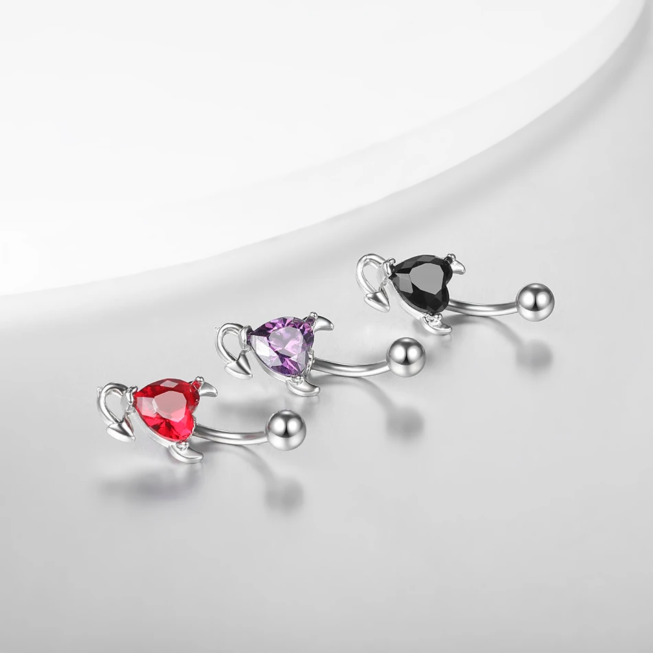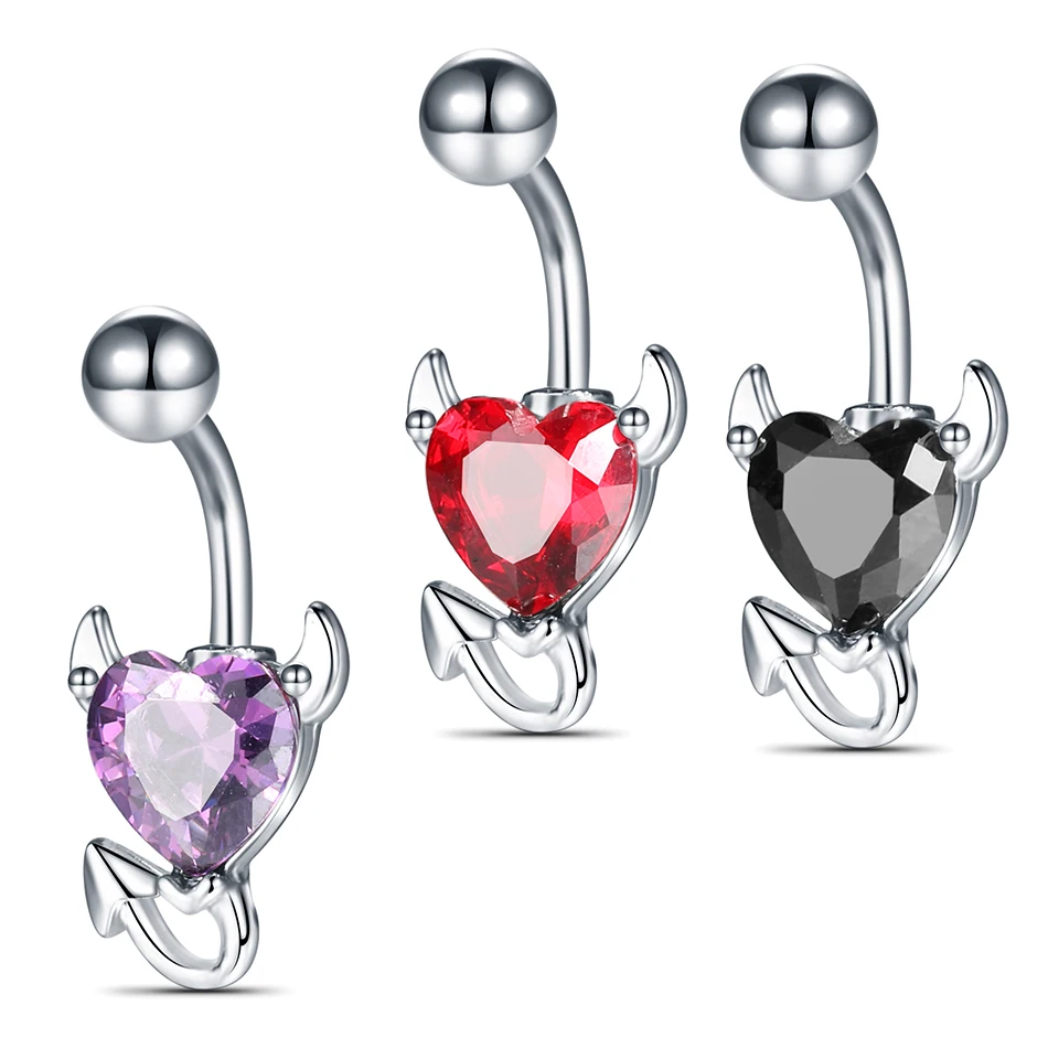 1PC Stainless Steel Heart Belly Button Ring Women Sexy Purple Red Zircon Demon Devil Navel Piercing Dangle Earring Body Jewelry
