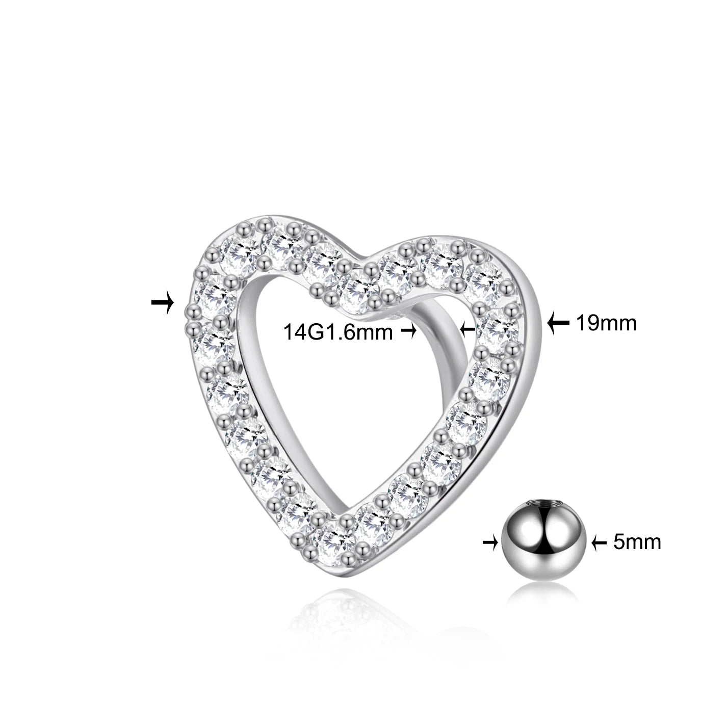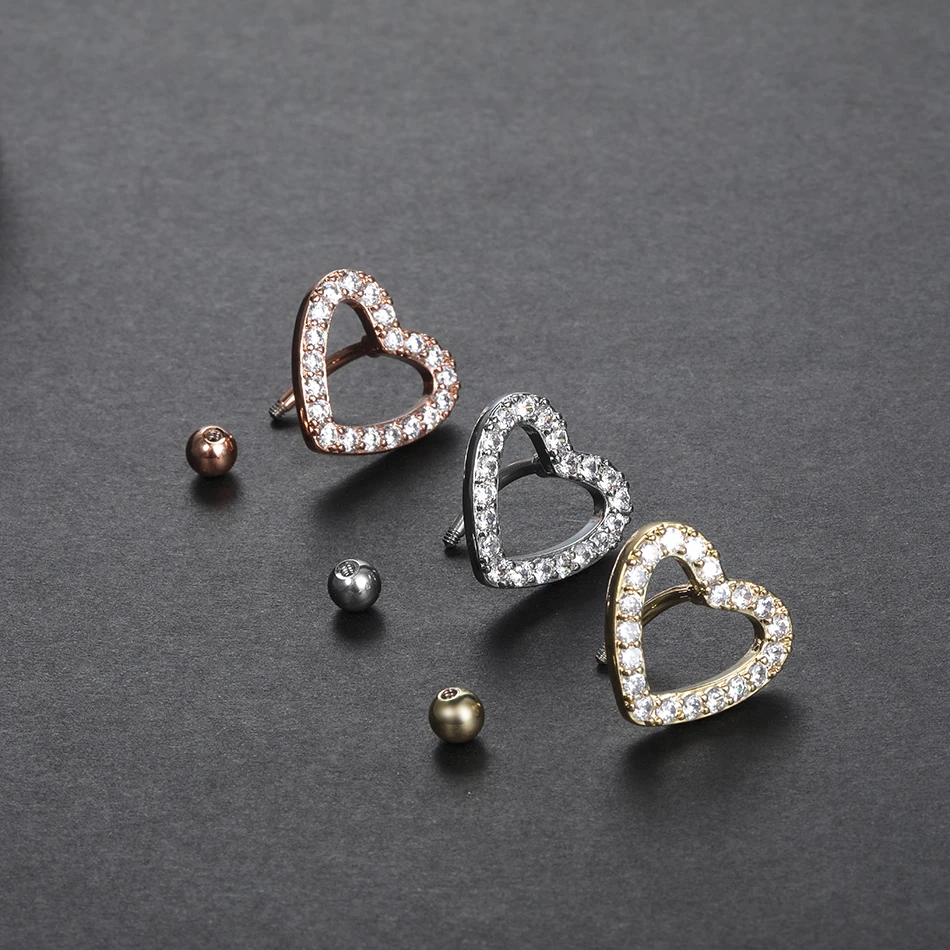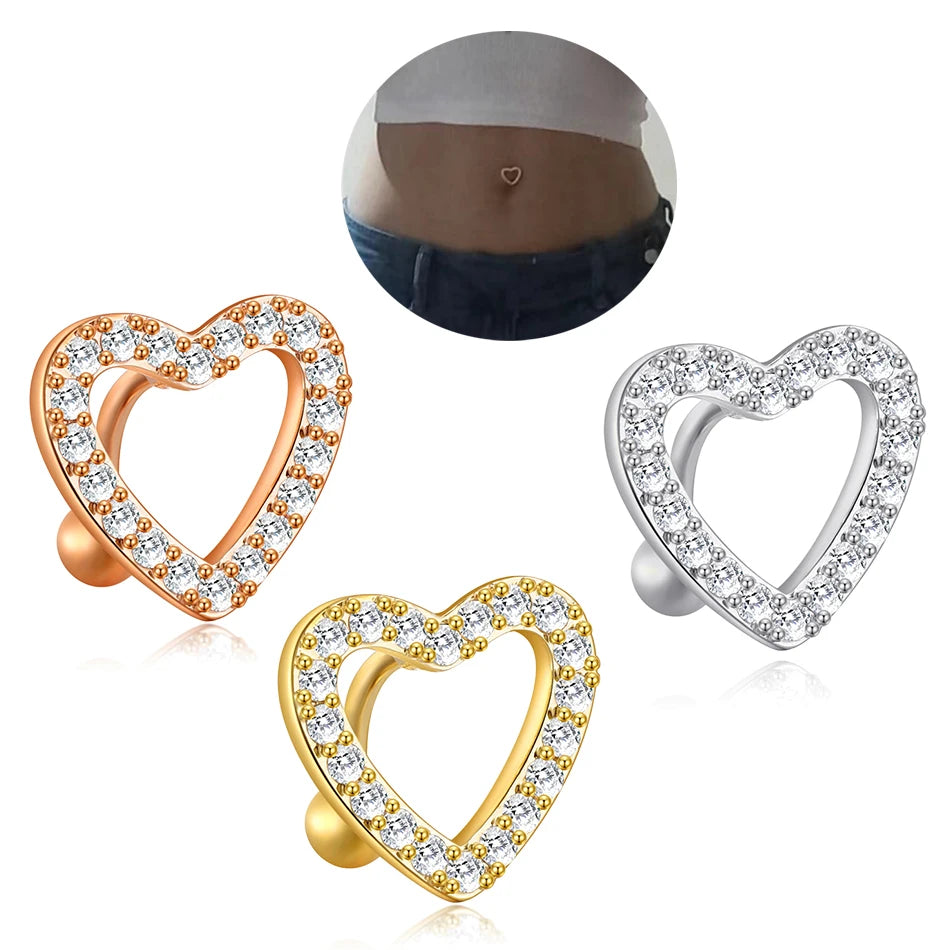 1Pc Stainless Steel Heart Shape Belly Button Ring Navel Piercing Reversed Bar Barbell Belly Navel Ring Women Body Jewelry 14G