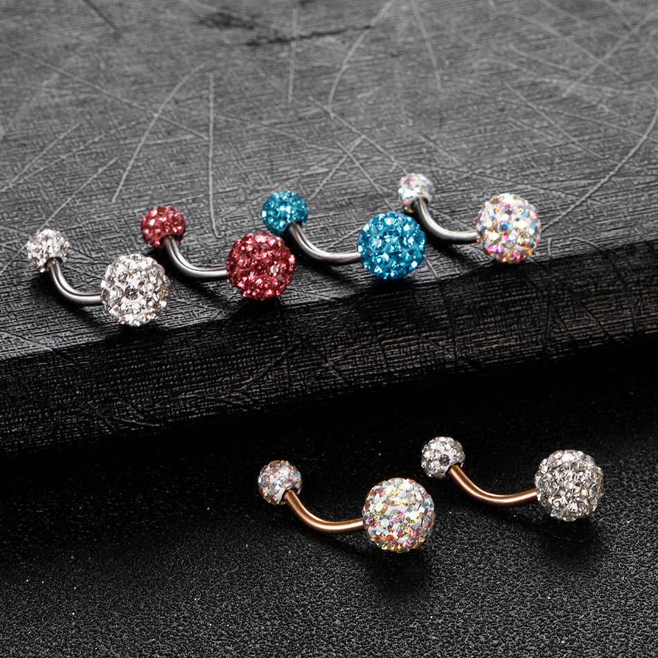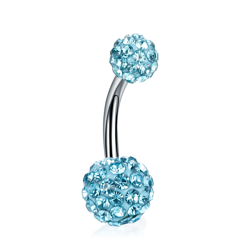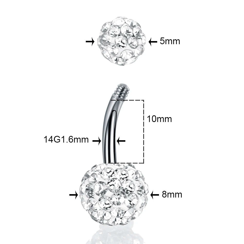 1PC Steel Double Side Belly Piercing Rings Epoxy CZ Crystal Disco Ball Belly Button Rings Navel Piercing Sexy Women Jewelry 14G