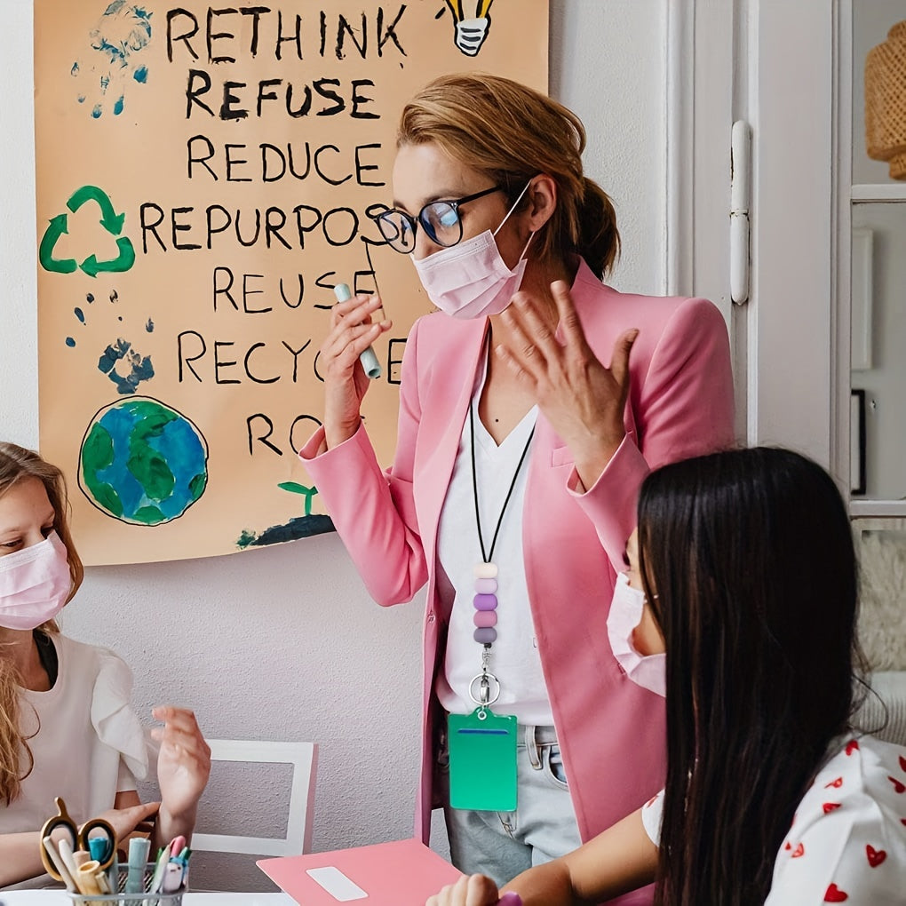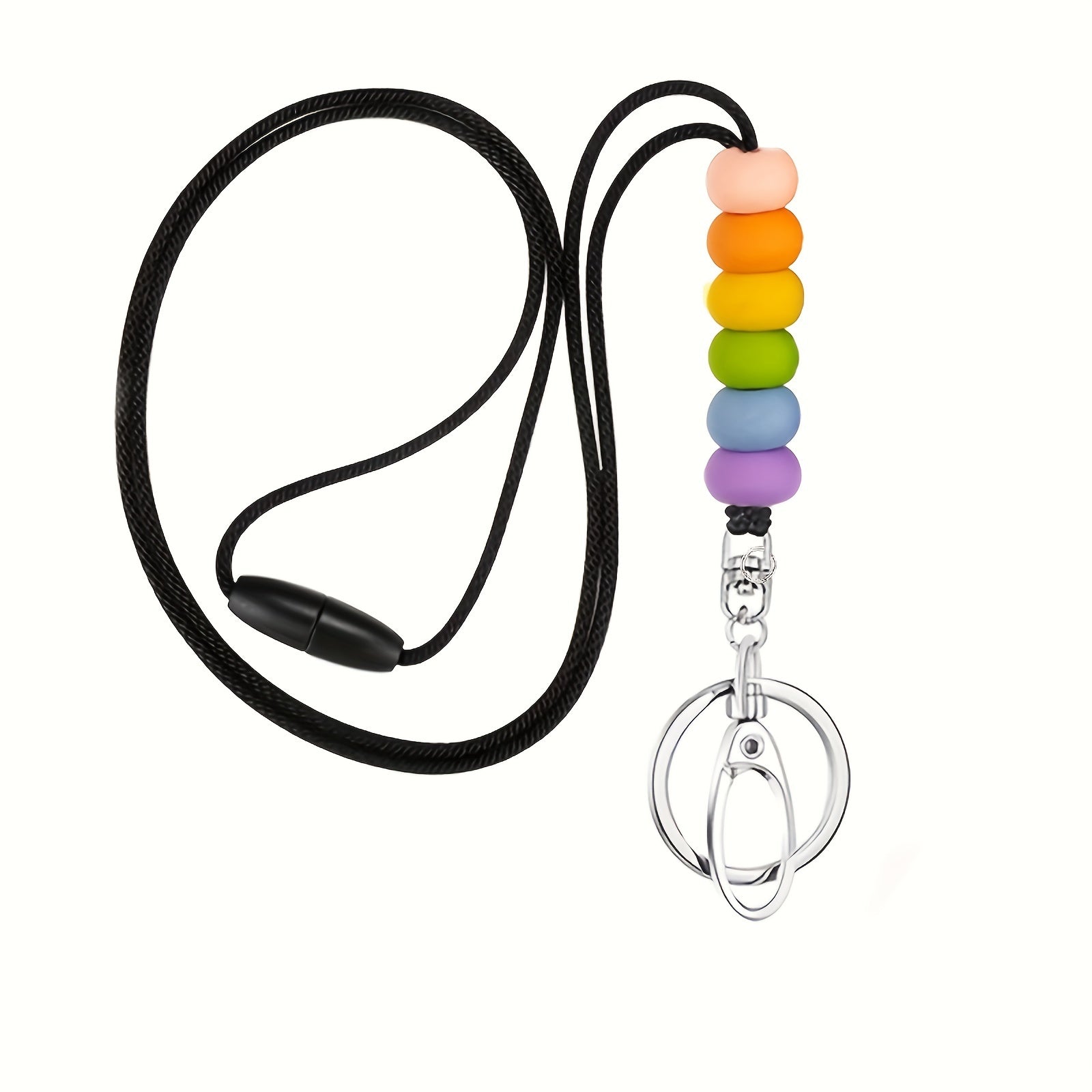 Hemasa 1pc Teacher Lanyard For Id Badges, Keys, Keychain, Cute Silicone Beaded Lanyard For Women/ Nurse/ Employees Students