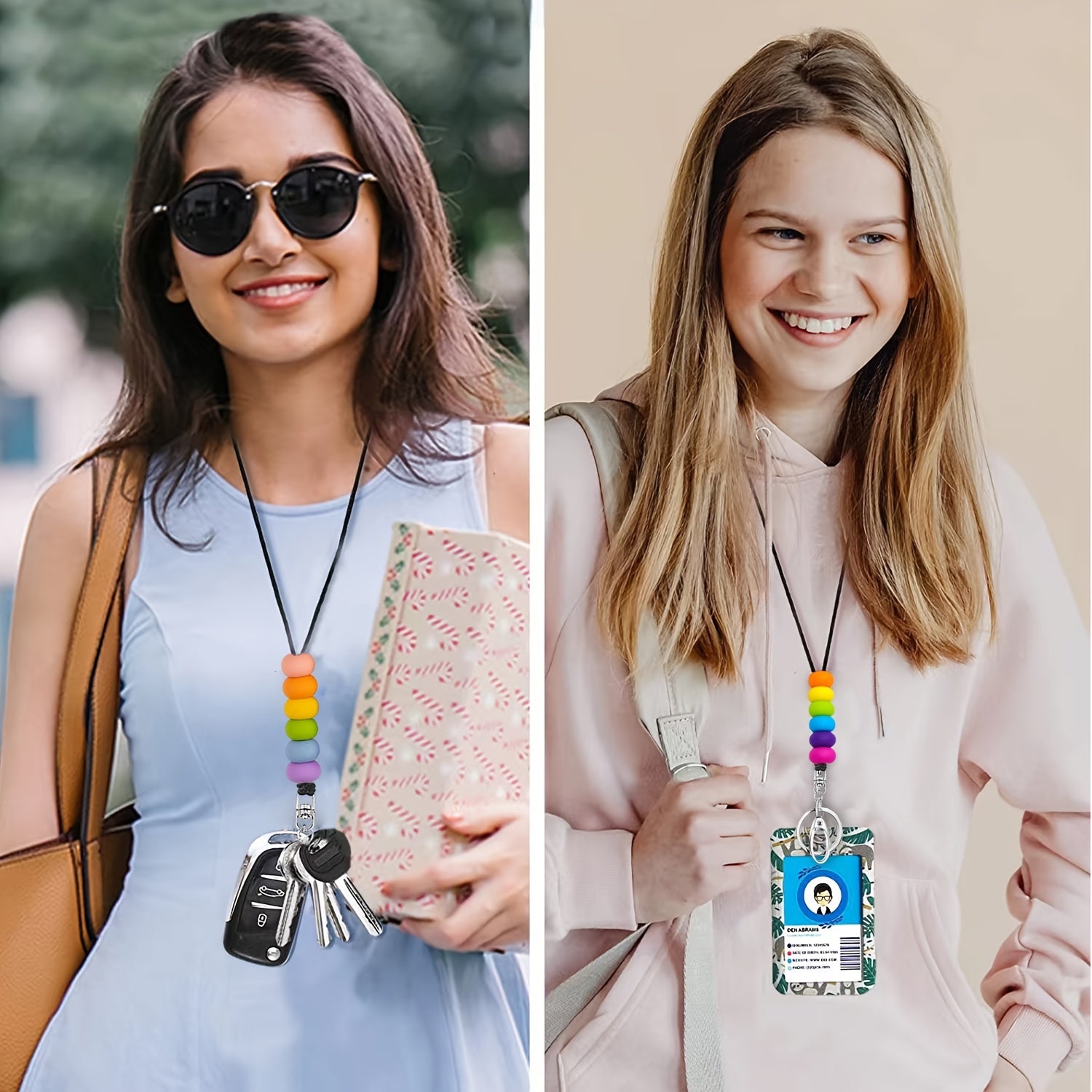 1pc Teacher Lanyard For Id Badges, Keys, Keychain, Cute Silicone Beaded Lanyard For Women Nurse Employees Students.
