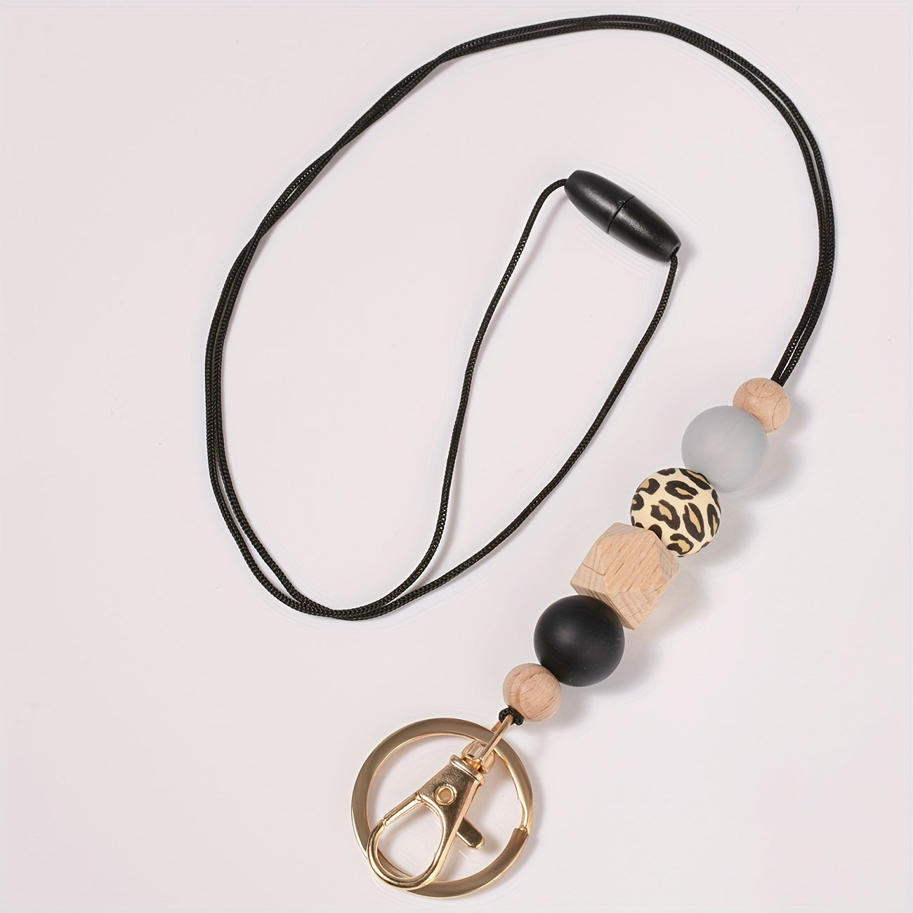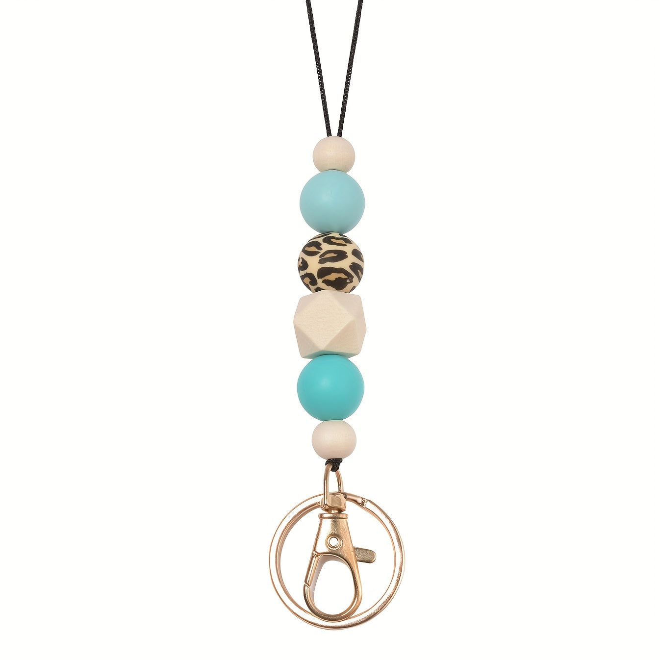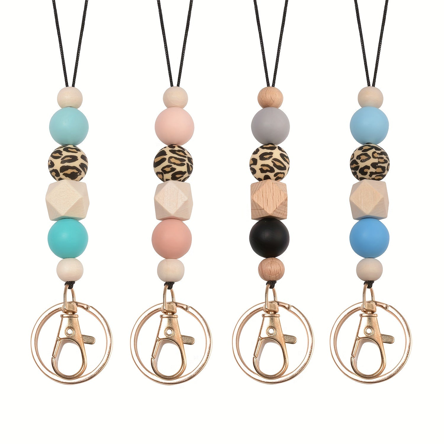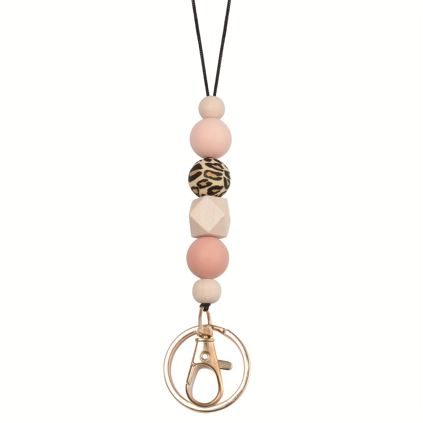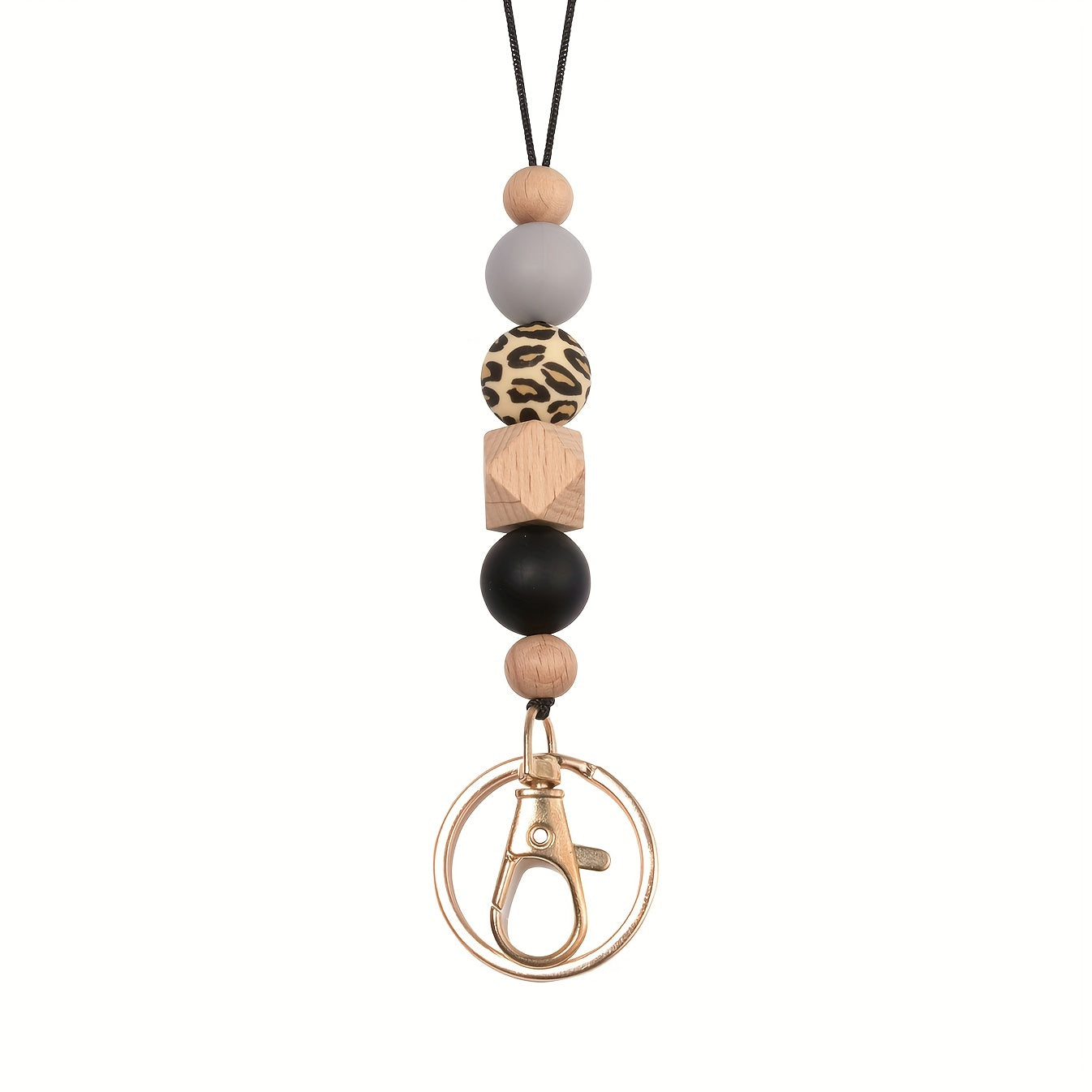1pc Teacher Lanyards For ID Badges Beaded Lanyards With Keychain Silicone Leopard Beaded Keychain Lanyards For Student Teacher Nurses Teacher Appreciate Gift