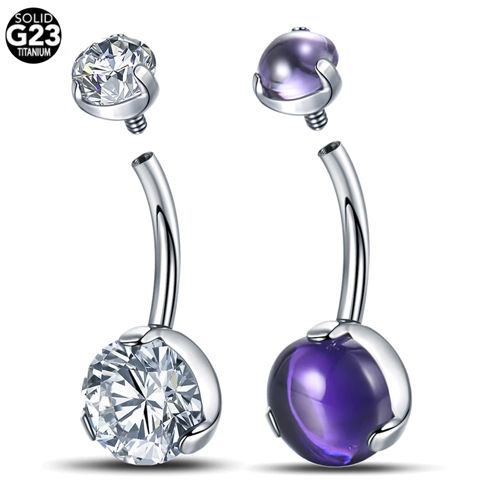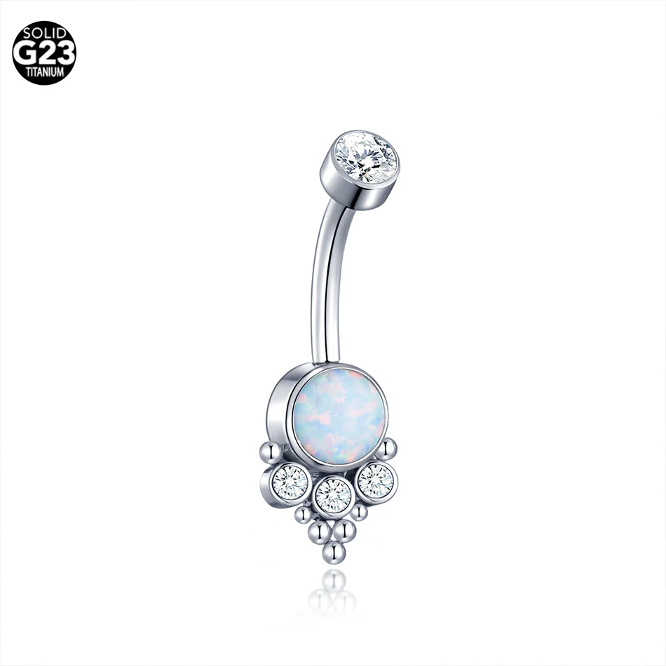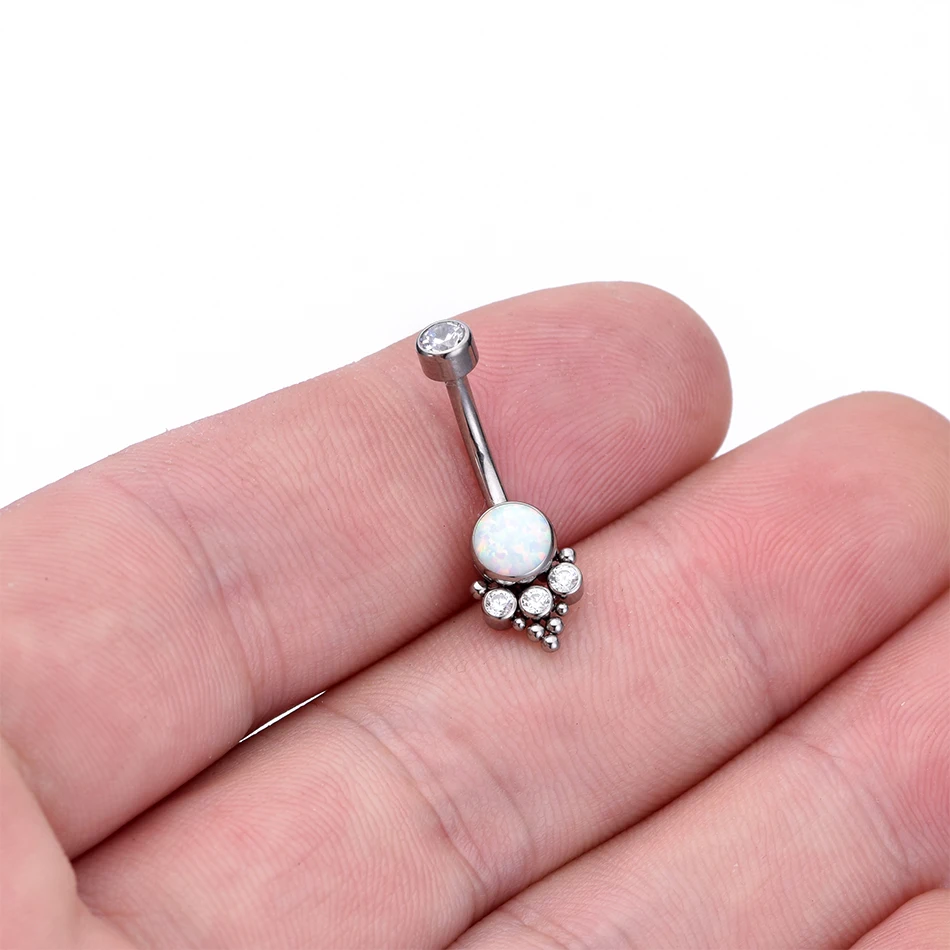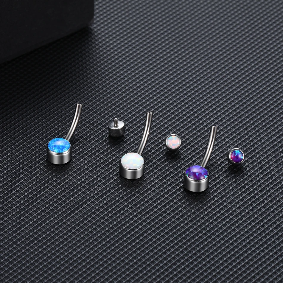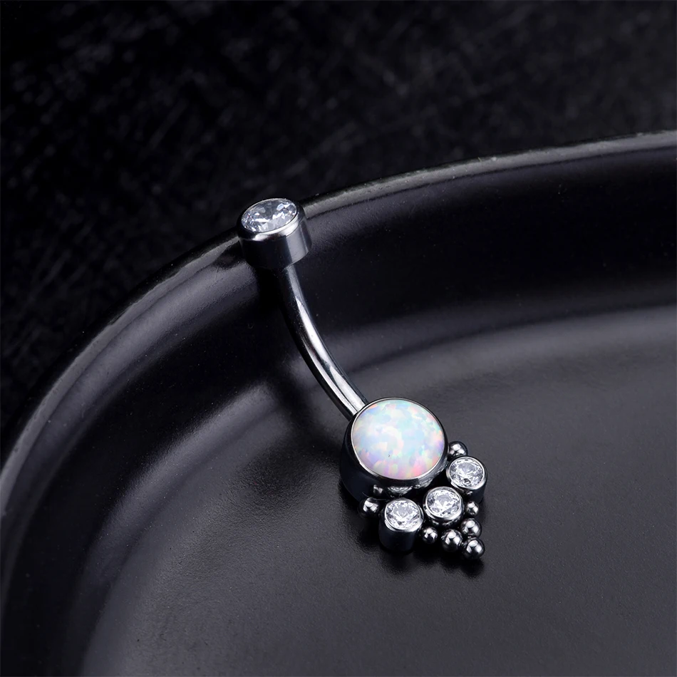 1PC Titanium Opal Belly Button Rings Navel Earring Piercing CZ Bezel Belly Ring Sexy Women Belly Piercing Jewelry Ombligo 14G