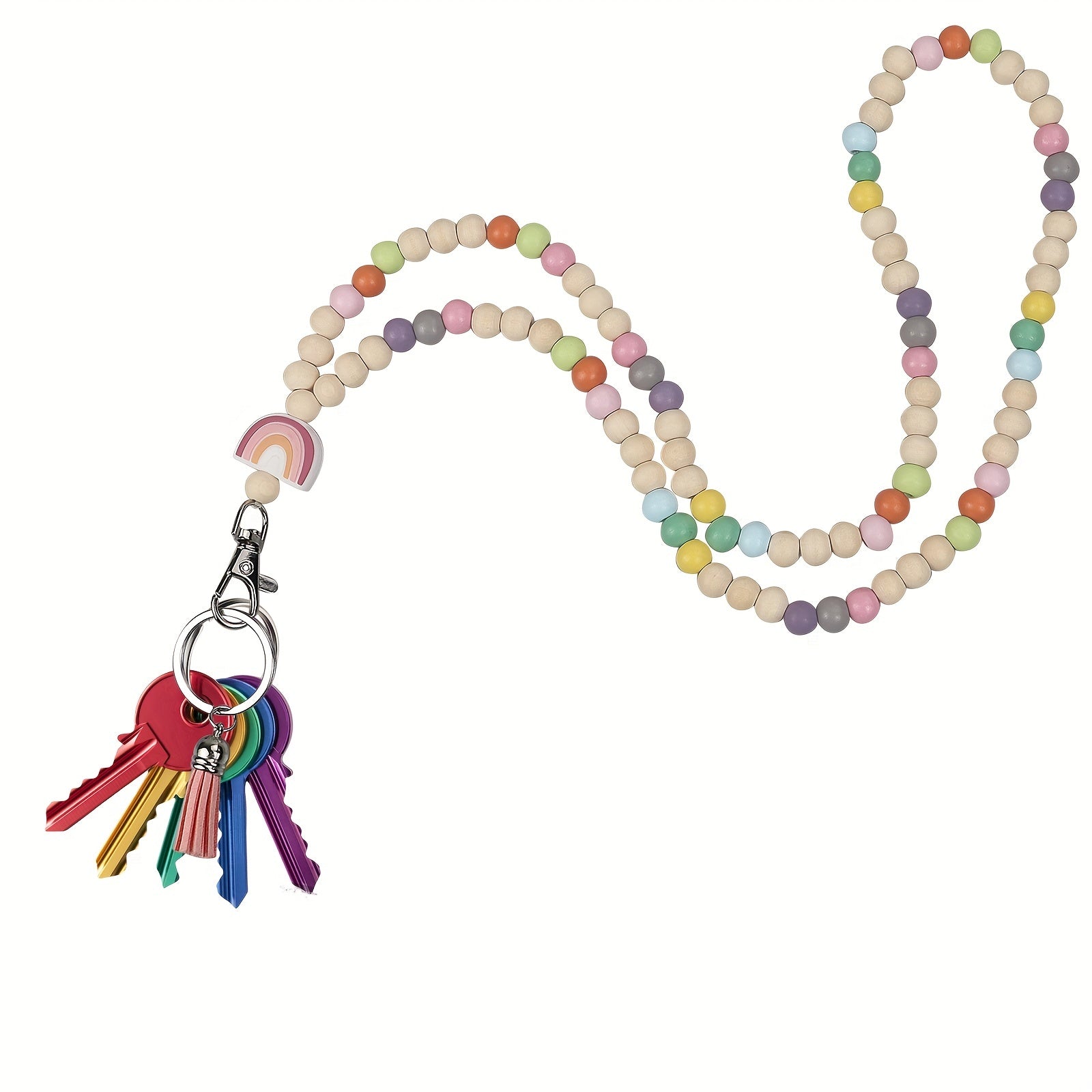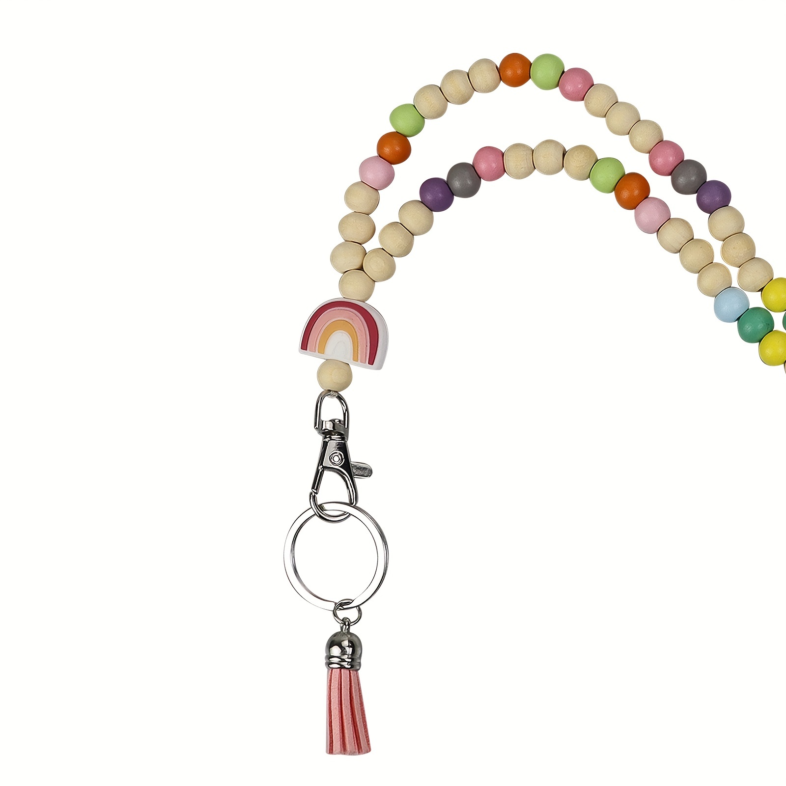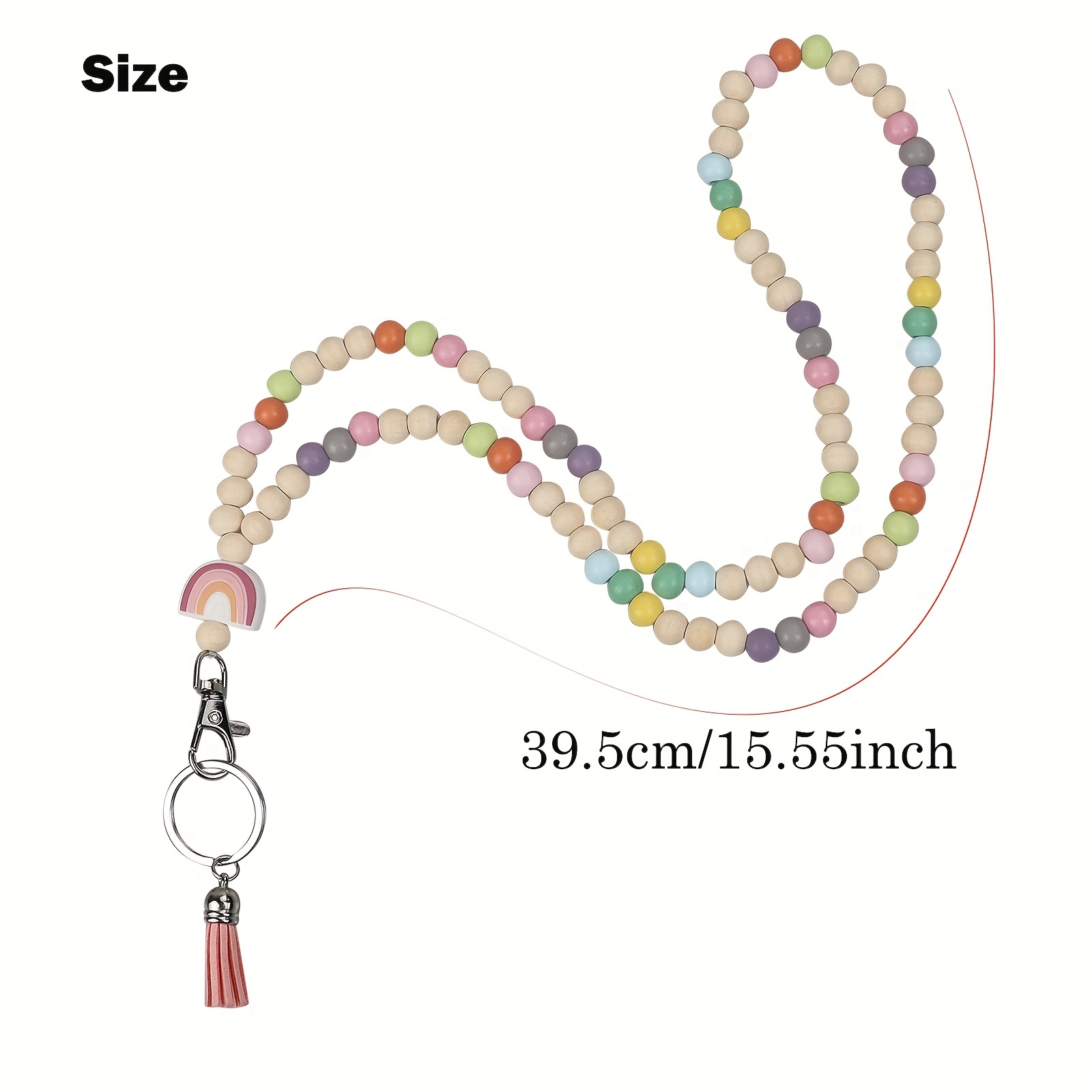 1pc Yiflin Handmade Colored Wood Beaded Teacher Lanyard For Keys, Keychain, Id Badge Holder, Boho Wood Beaded Neck Lanyard With Tassel For Women, Phone Lanyards With Key Ring.