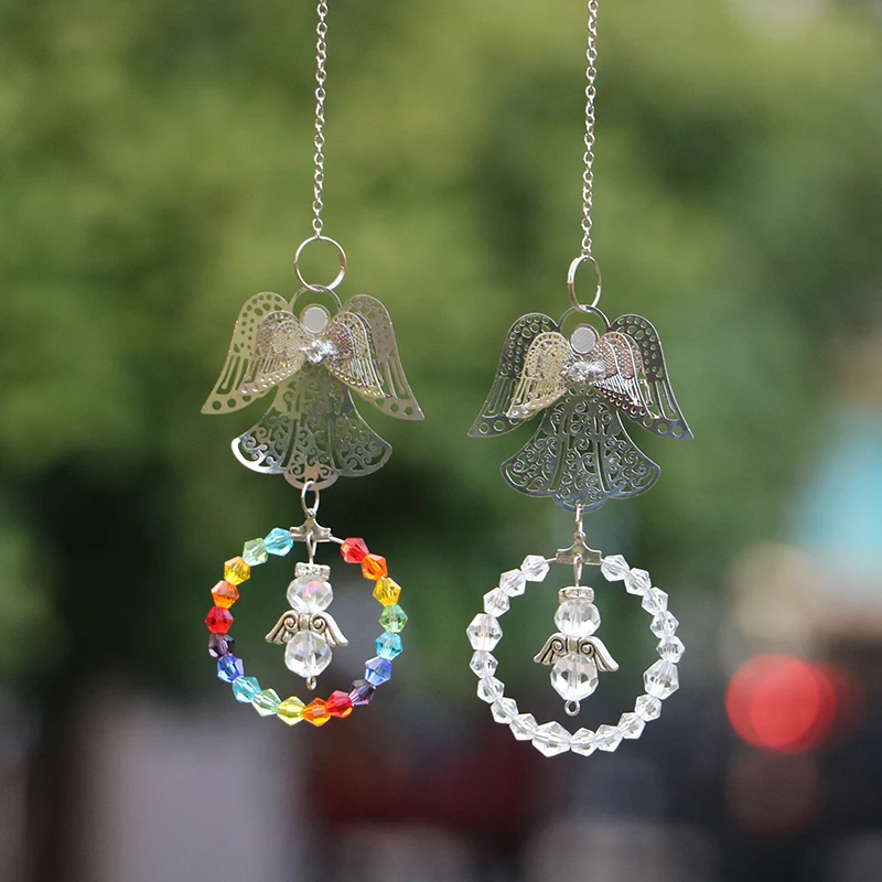1PCS Angel Crystal Suncatcher Hanging Suncatcher Prism Ornament Rainbow Maker Pendant for Home Curtain Garden Car Decoration