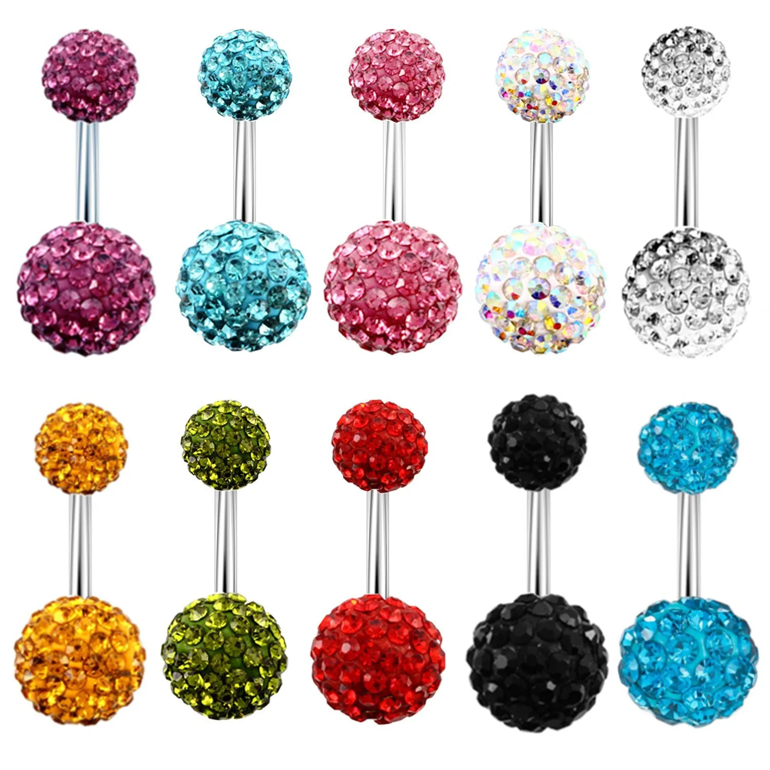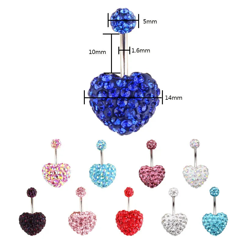 1PCS Crystal Ball Belly Button Rings Stainless Steel Zircon Navel Piercing Heart Belly Piercing Cute Navel Bar Piercing Ombligo