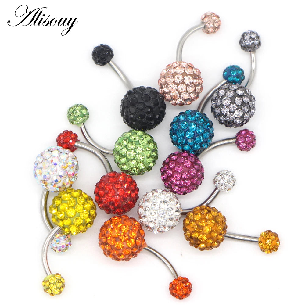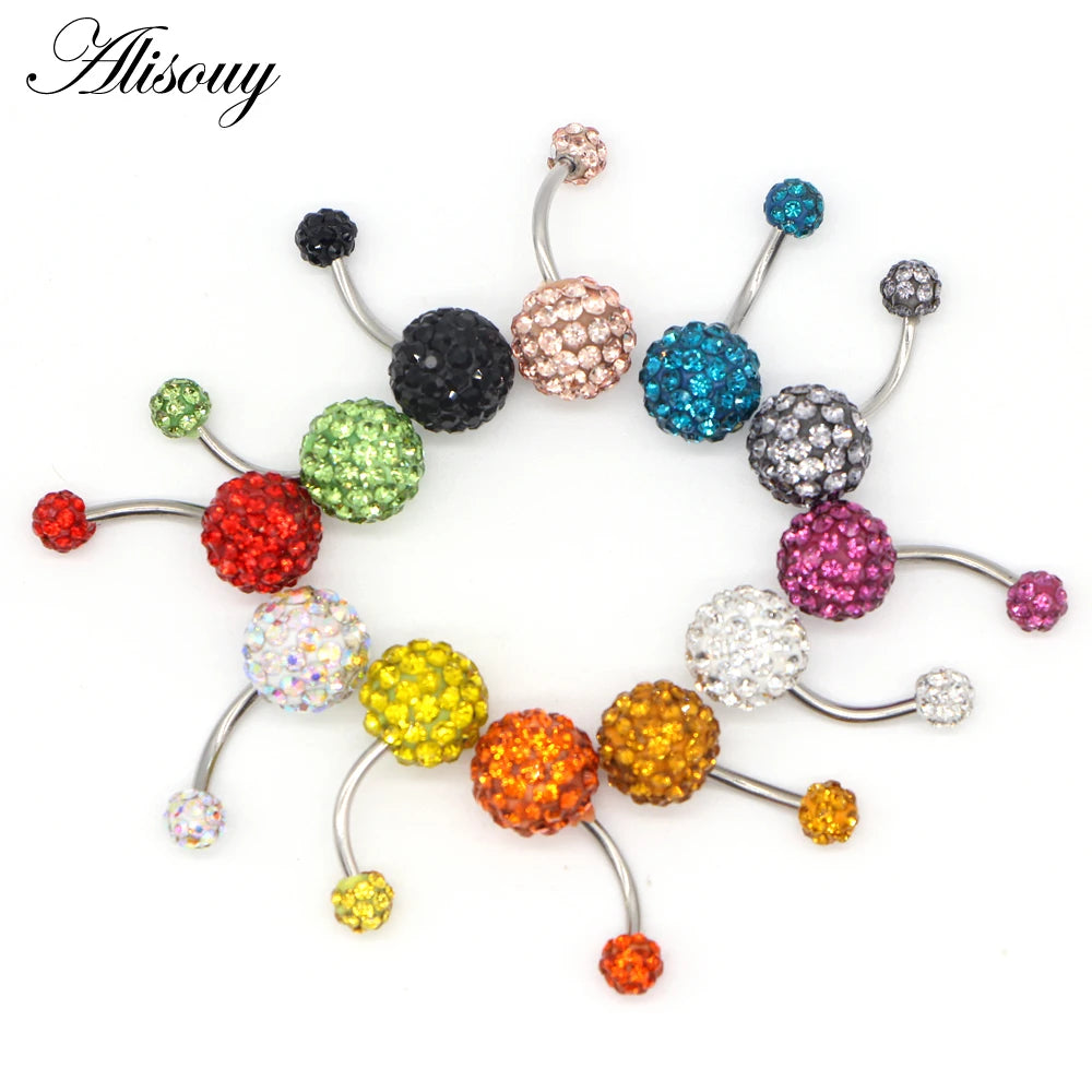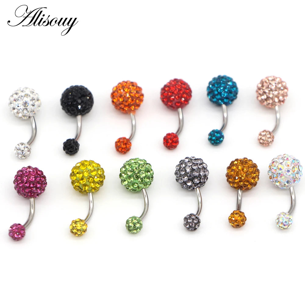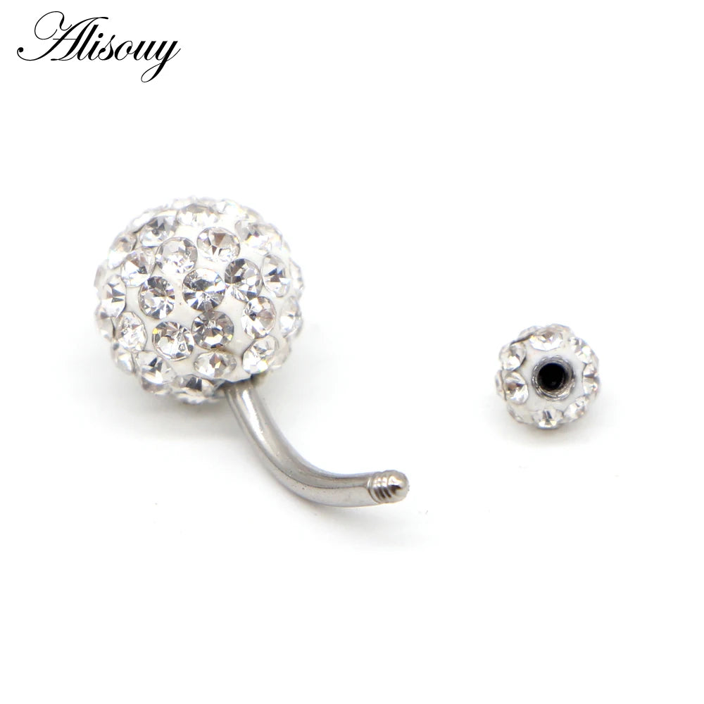 1PCS Crystal Rhinestone Woman Navel Belly Button Ring Pircing Surgical Steel Real Belly Piercing Navel Ringen Bar Body Jewelry
