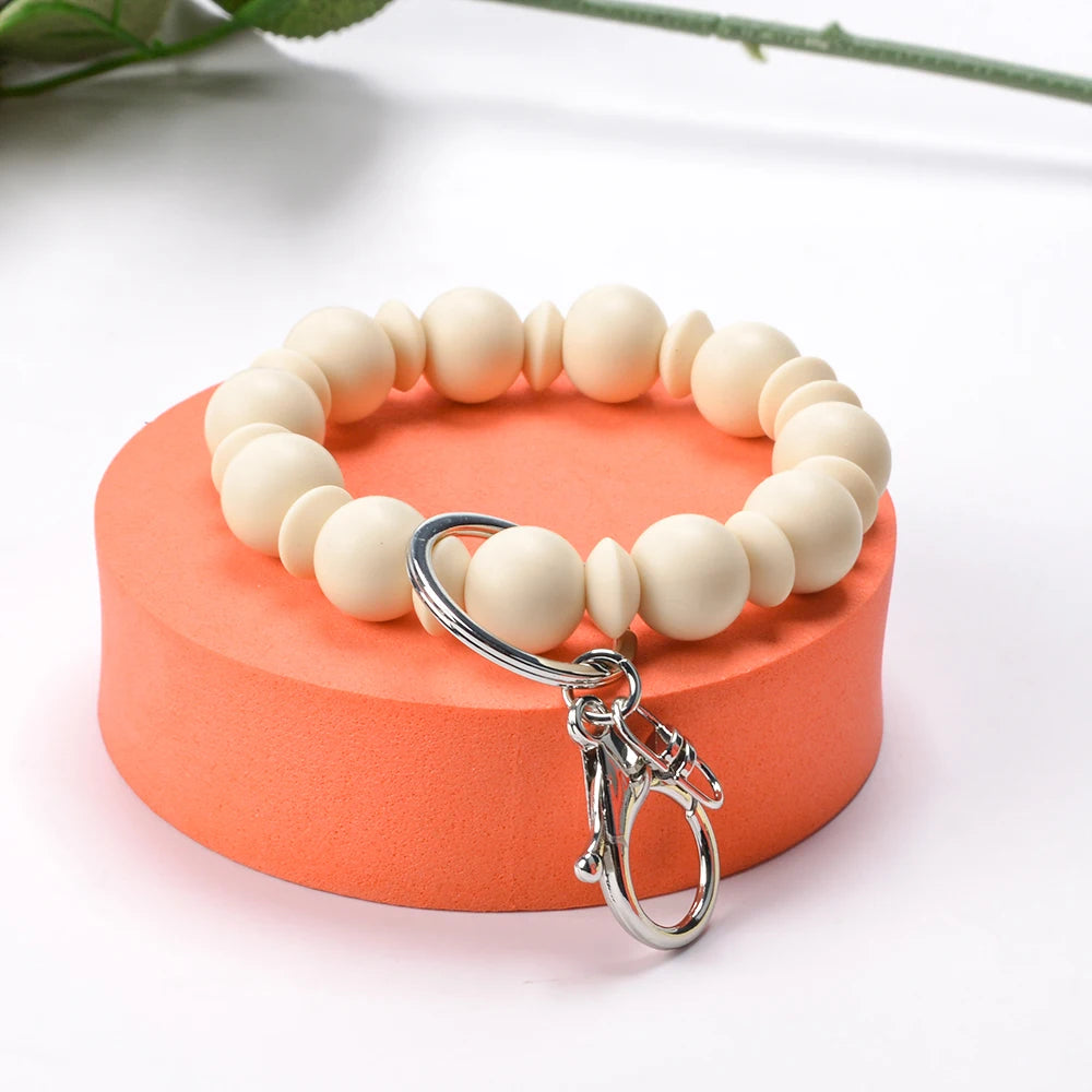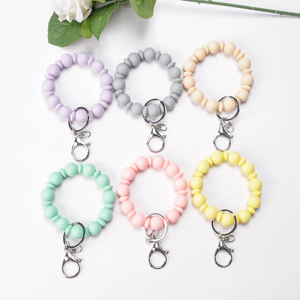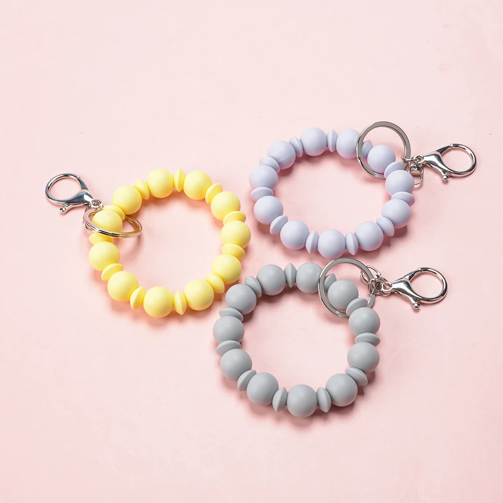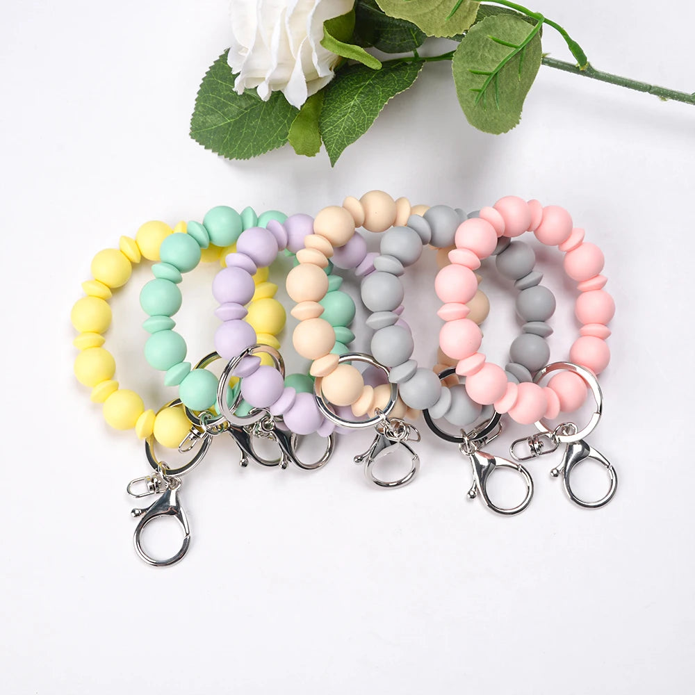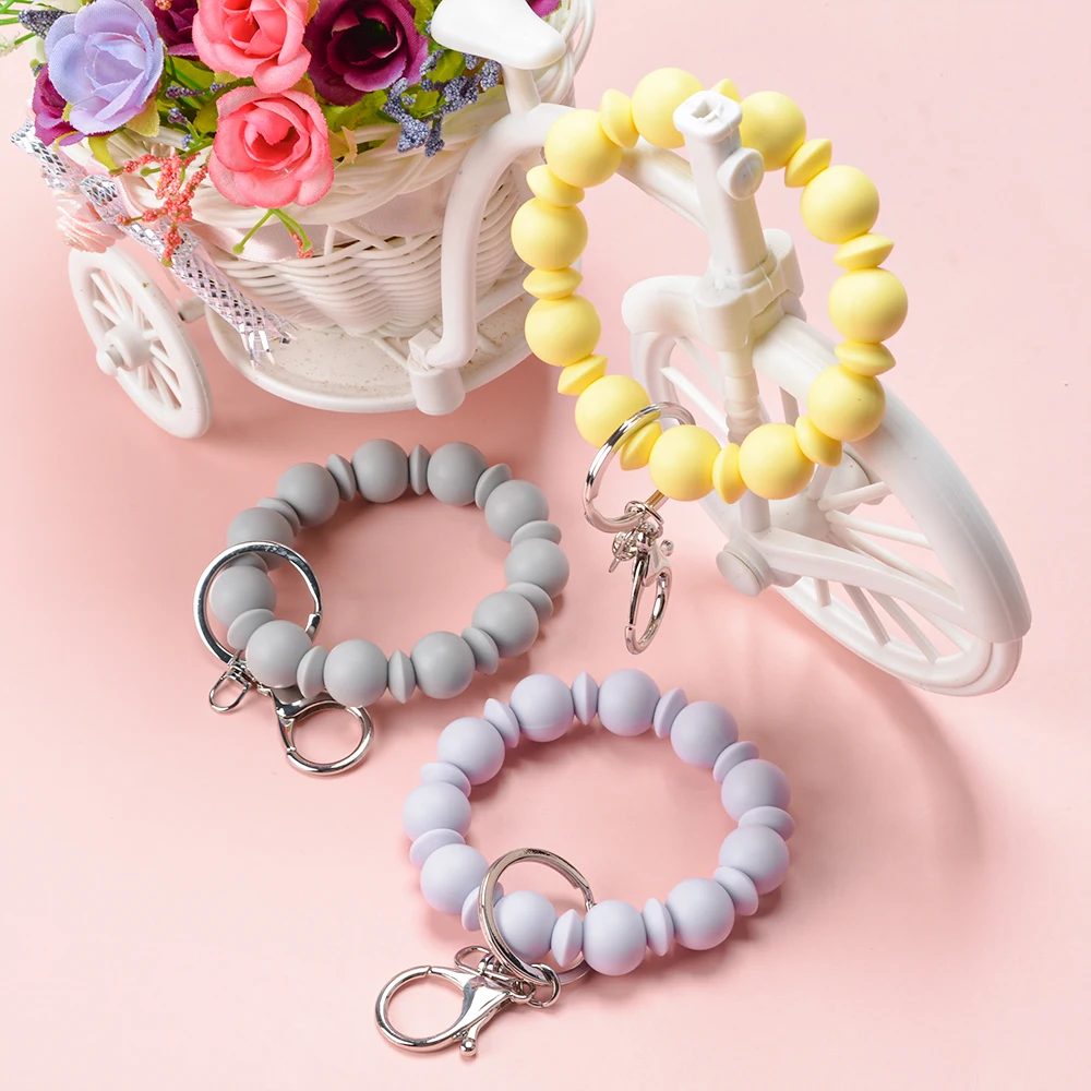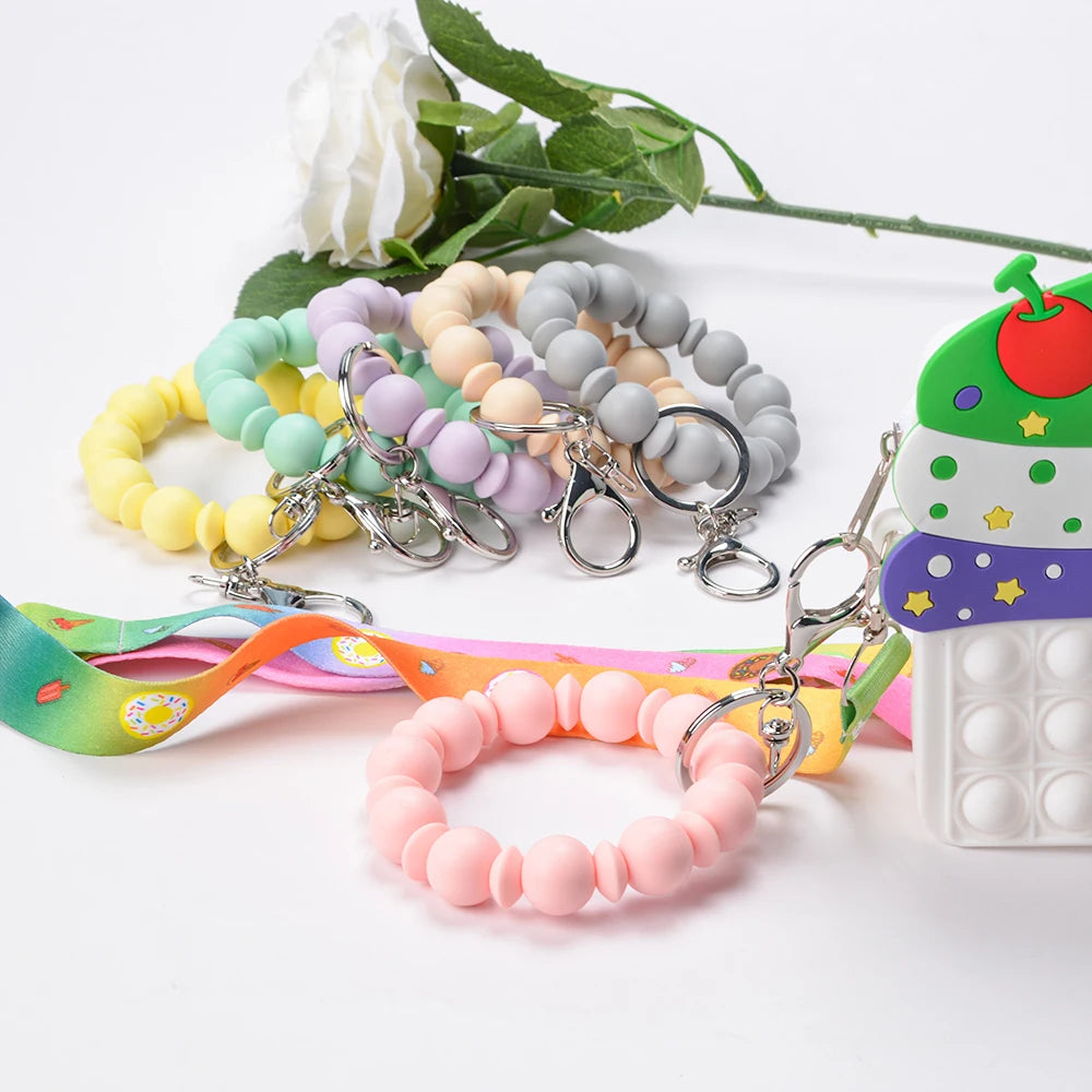 1pcs Silicone Beads Keychain Keyring For Women Wristlet Bracelet Pendant Keychain With Jewelry Accessories