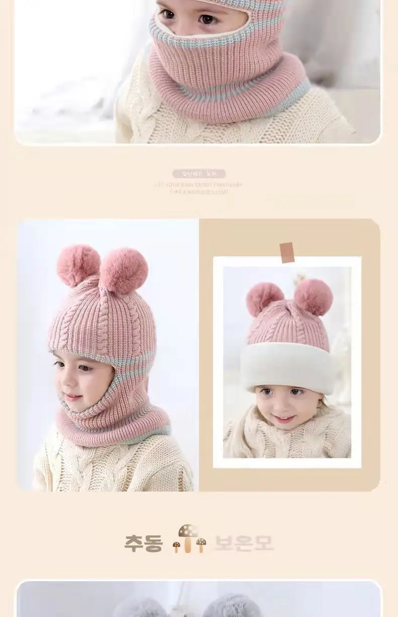 2-5 Years Baby Hats Scarf One-Piece Baby Hat Winter Protection Ears Hats Warm Acrylic For Boys And Girls Infant Toddler Bonnet