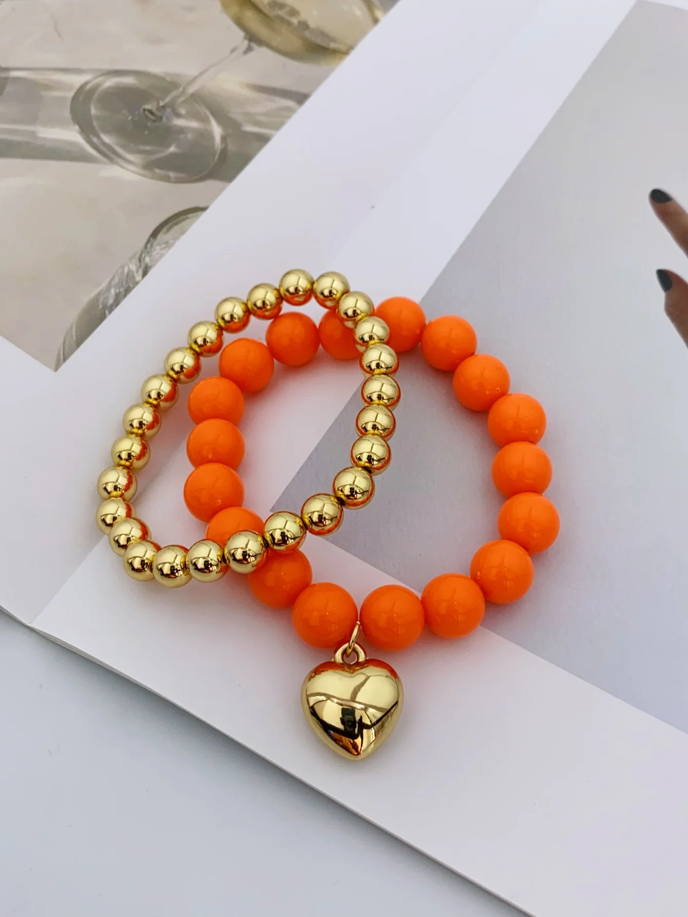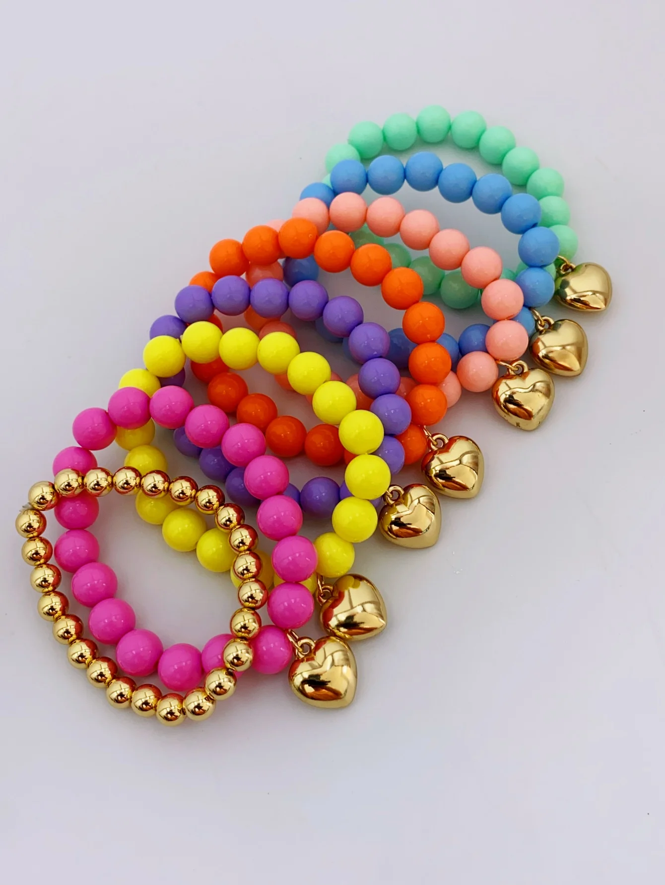 2 Pieces of Handmade Acrylic Beaded Bracelets with Heart-Shaped Pendants, Ideal for Summer bracelet for women