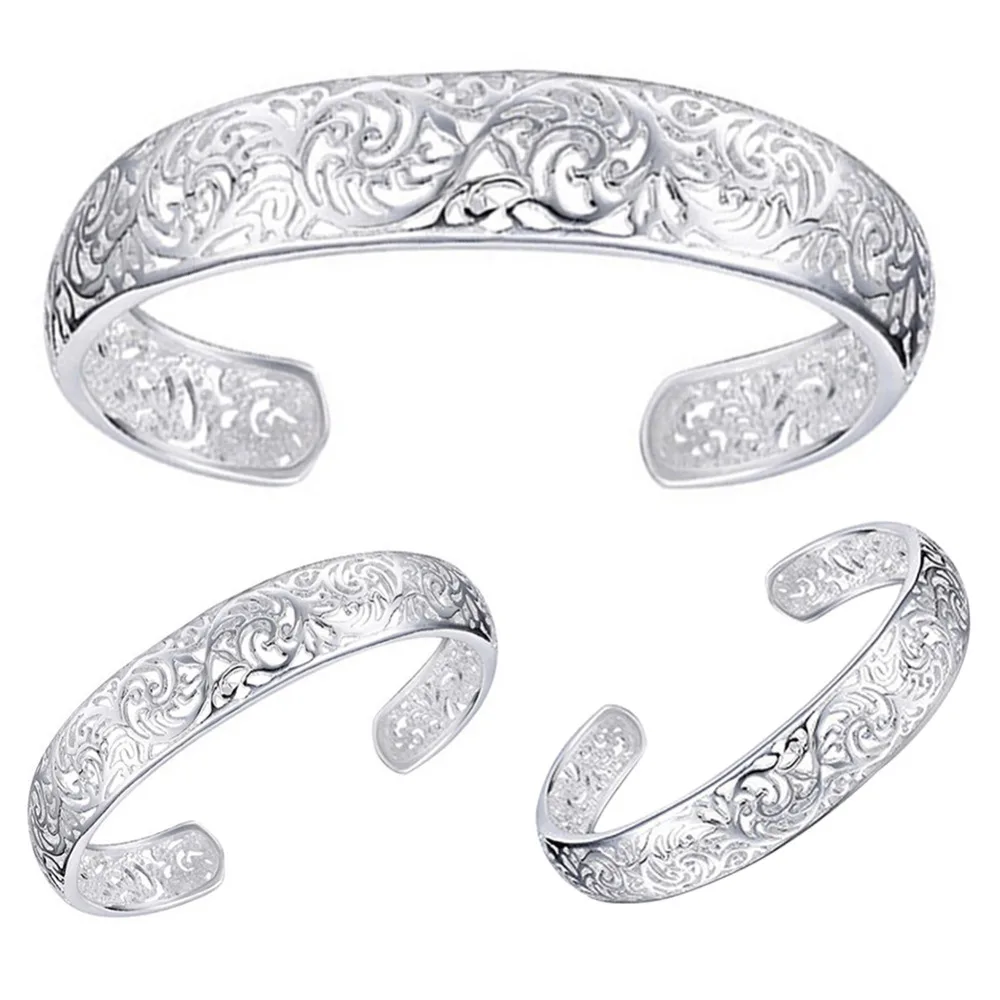 Women's 925 Sterling Silver Plated Bezel Hollow Cuff Bangle Open Bracelet