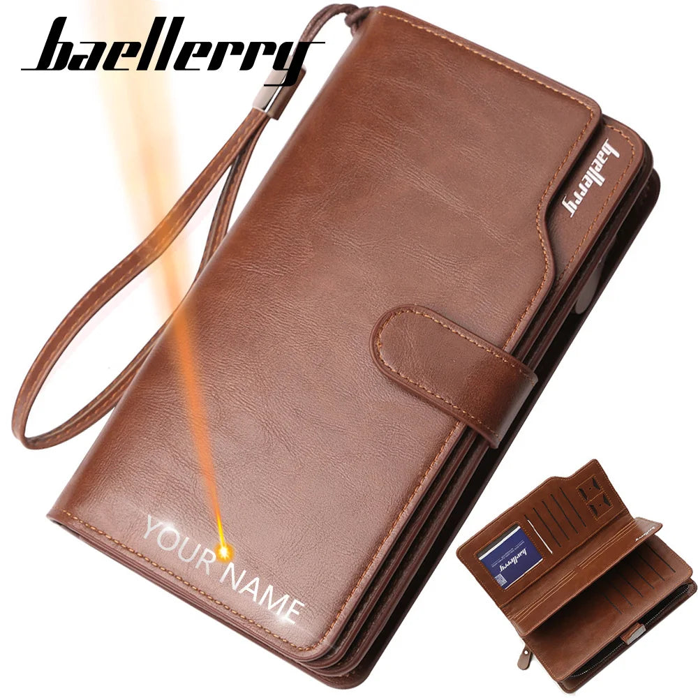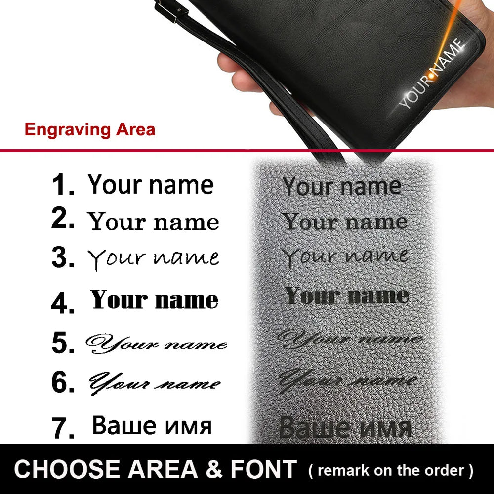 2024 Men Wallets 21 Card Holders Name Engraving Male Purse Quality Zipper Large Capacity PU Leather Wallet For Men Carteria