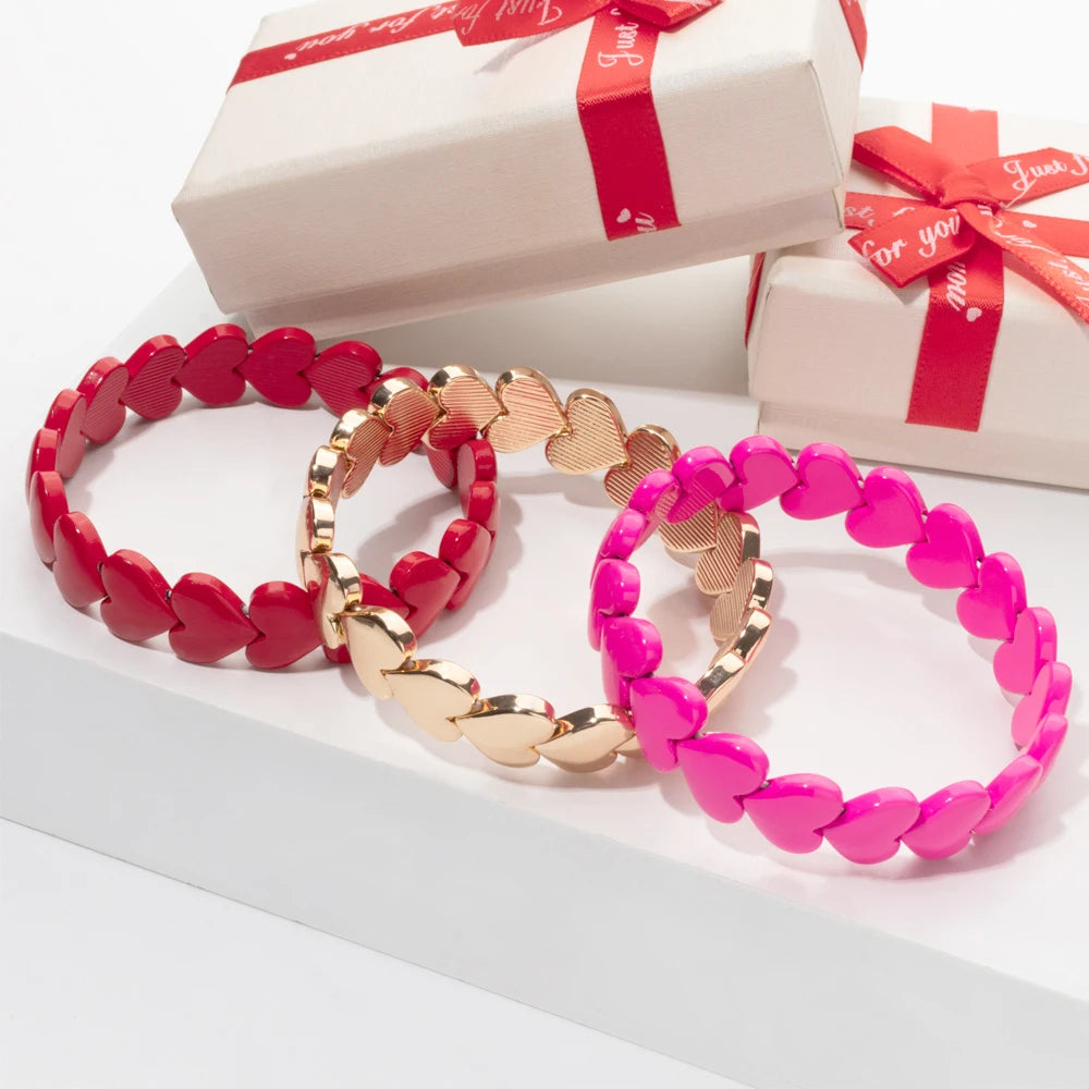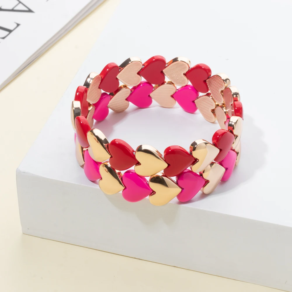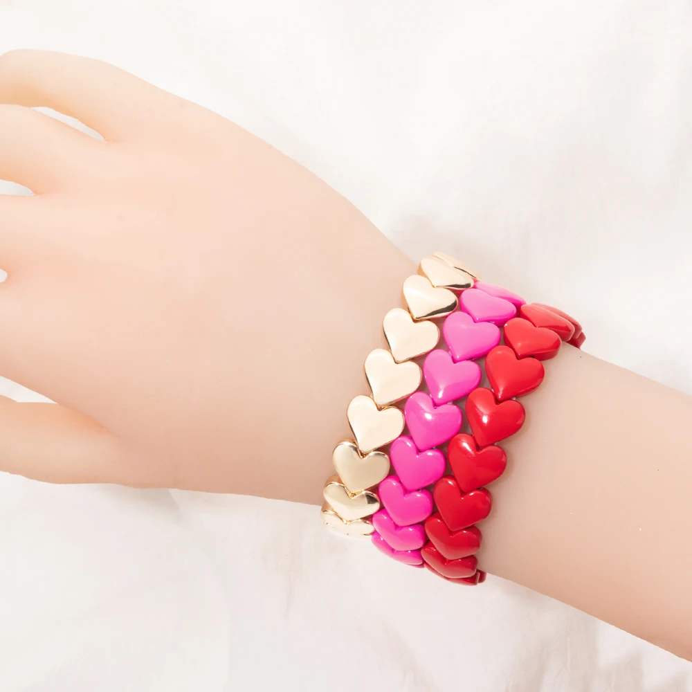 [Product Name] 2024 New Arrival Love Heart Enamel Elastic Bracelet Set