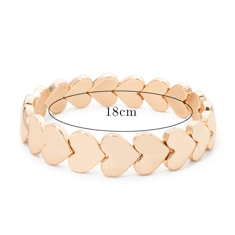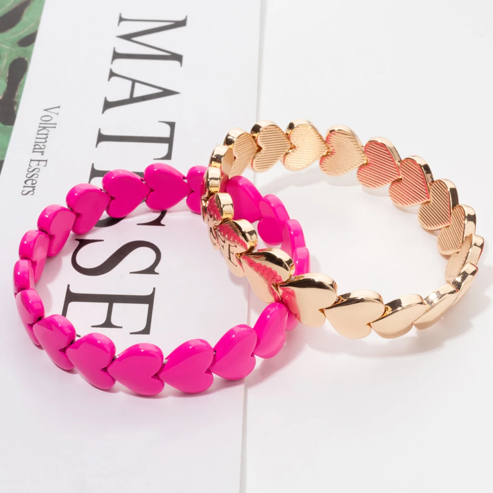 2024 New Arrival Enamel Heart Bead Bracelet Gold Color Elastic Bangle Set for Women Love Romantic Couple Jewelry Accessories