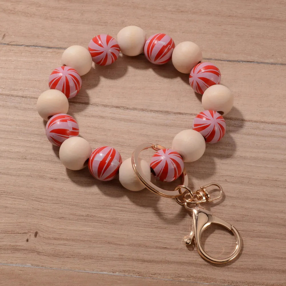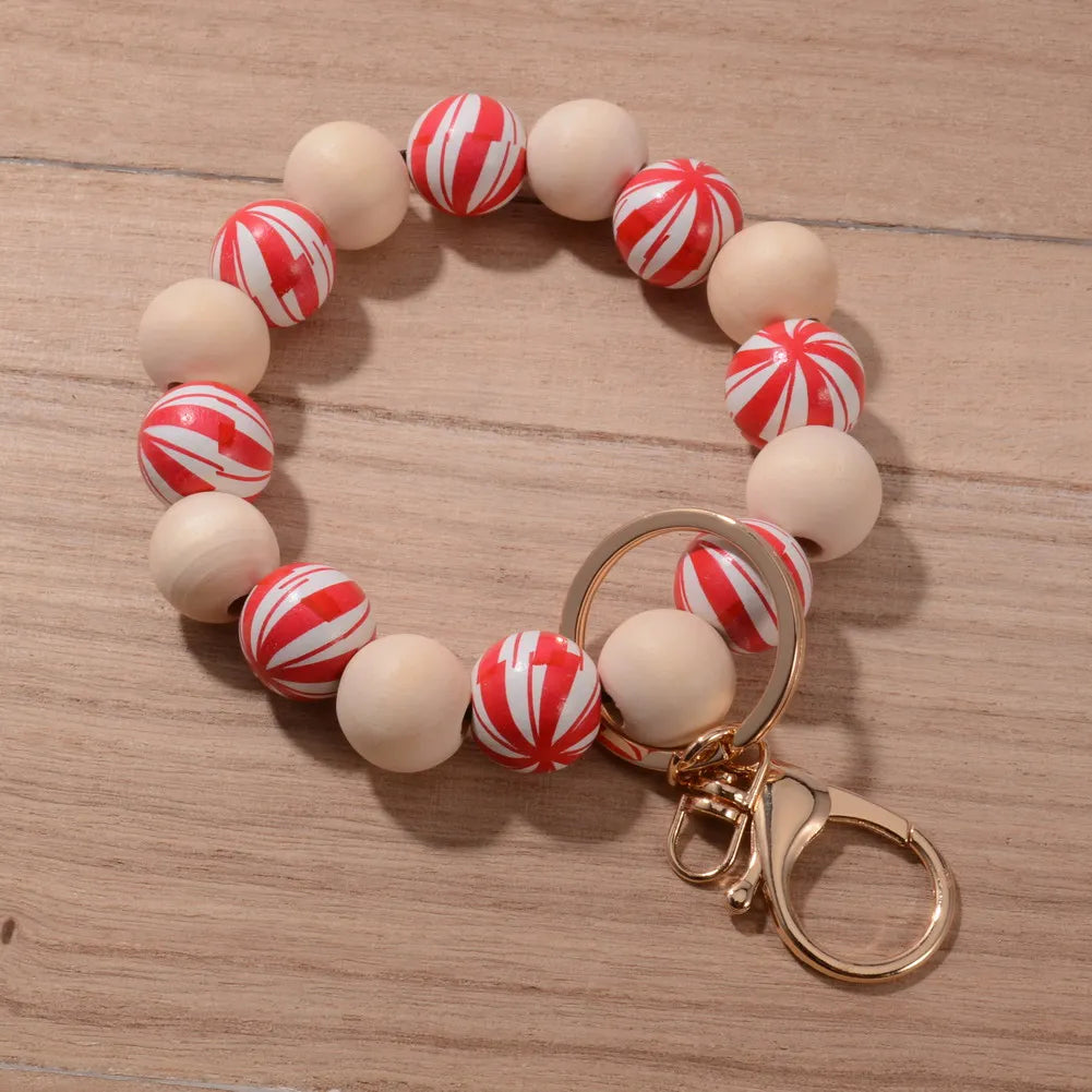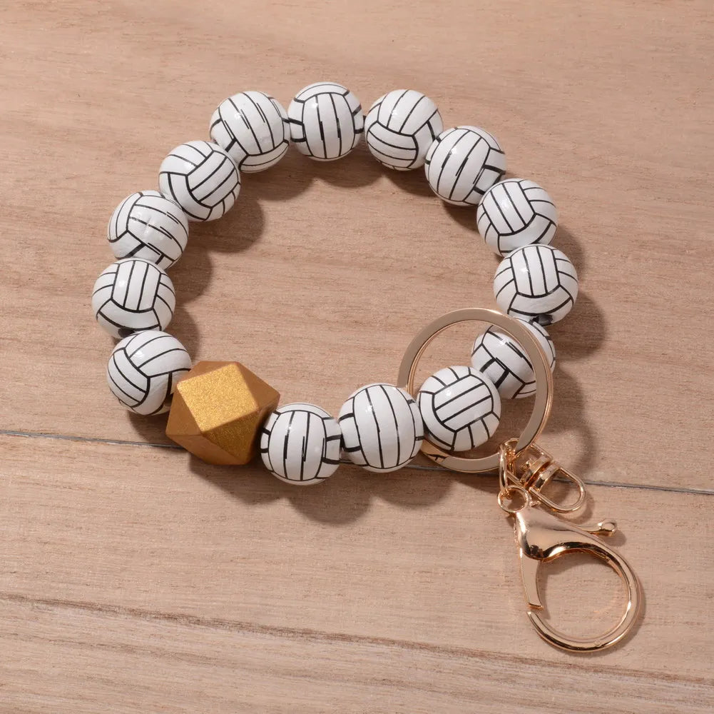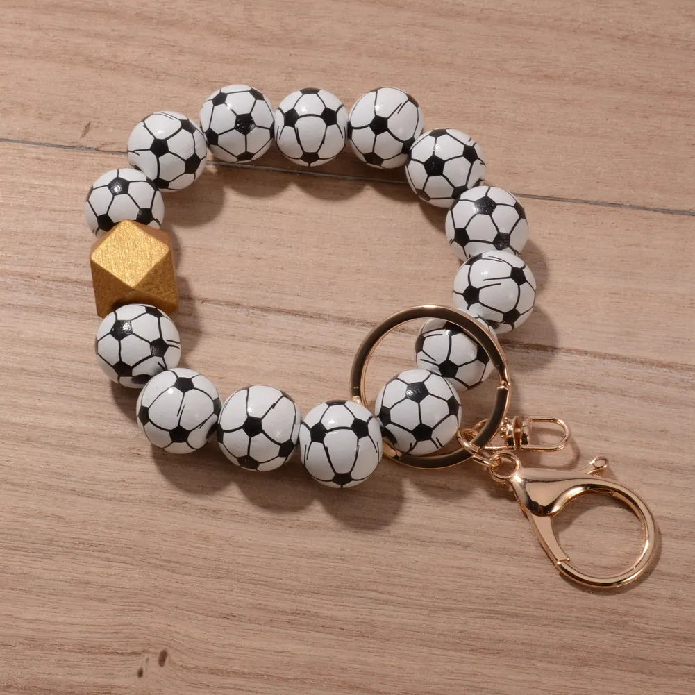 2024 New Fashion Ball Charm Bracelet Keychains for Women Girls Sports Bracelet Key Chain Wood Baseball Beads Wrist Keychain Gift