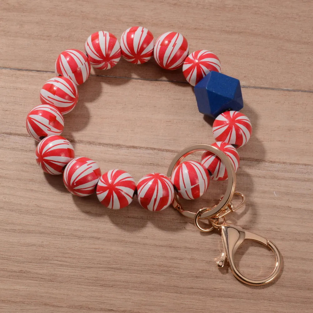 Fashion Charm baseball Keychain For Keys Wood Beads Bracelet Keyring For Women Accessories Multicolor Keychain Jewelry Gifts