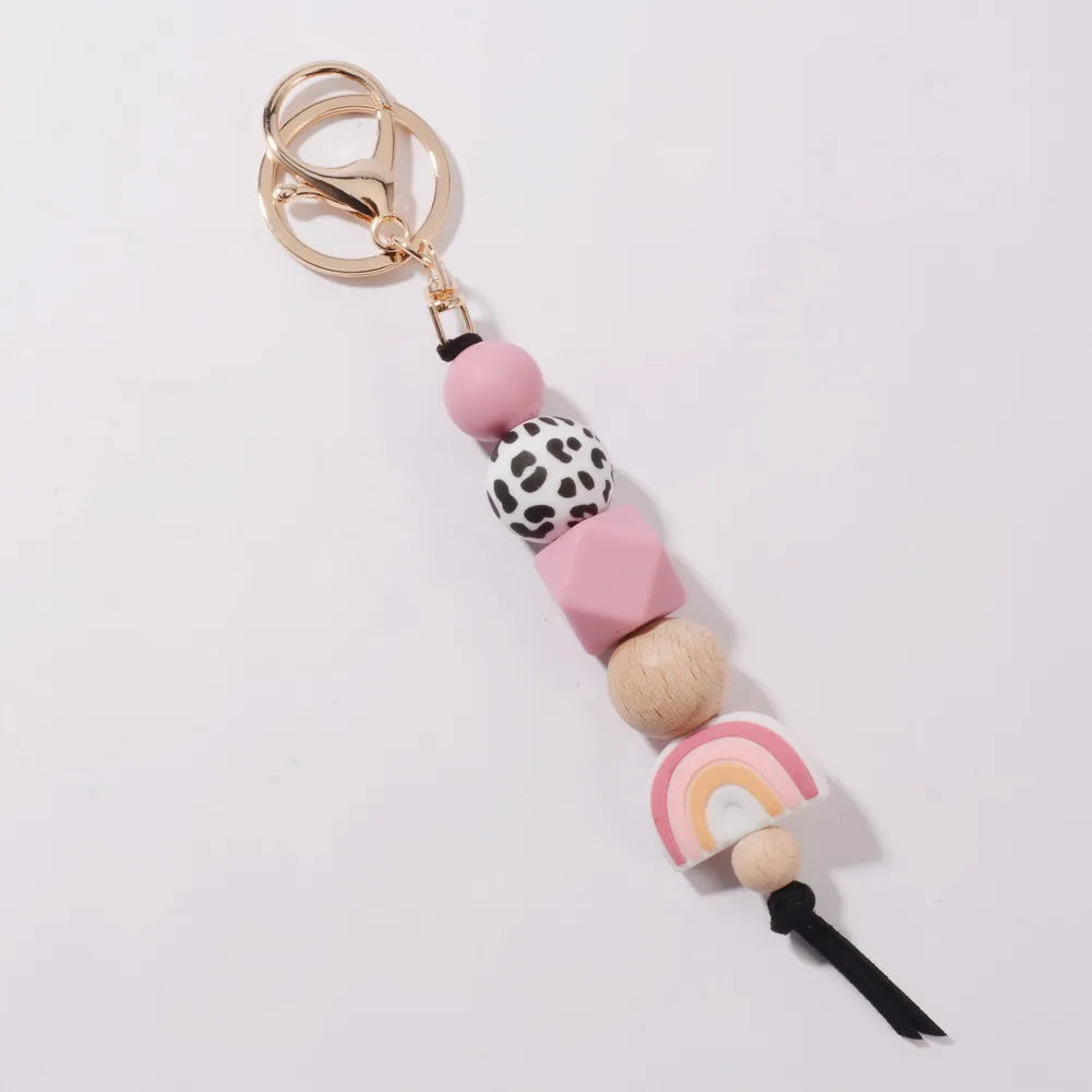 Hemasa Silicone Wooden Bead Keychain /Keyring For Jewellery Gift