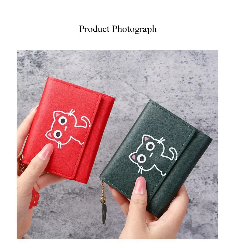 2024 New Women Wallet Cute Cat Short Wallet Leather Small Coin Purse Girls Money Bag Card Holder Ladies Female Hasp Wallet