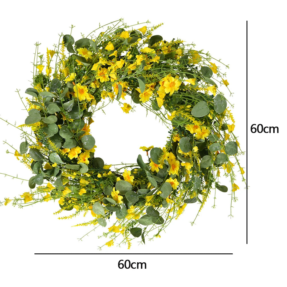 22" Artificial Spring Wreaths for Front Door Daisy Wreath with Eucalyptus Leaves Handmade Spring Summer Floral Wreath Yellow Daisy Wreath for Indoor Outdoor Home Decoration