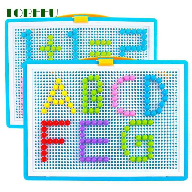 296 Pieces/Set Box-Packed Grain Mushroom Nail Beads Intelligent 3D Puzzle Games Jigsaw Board for Children Kids Educational Toys