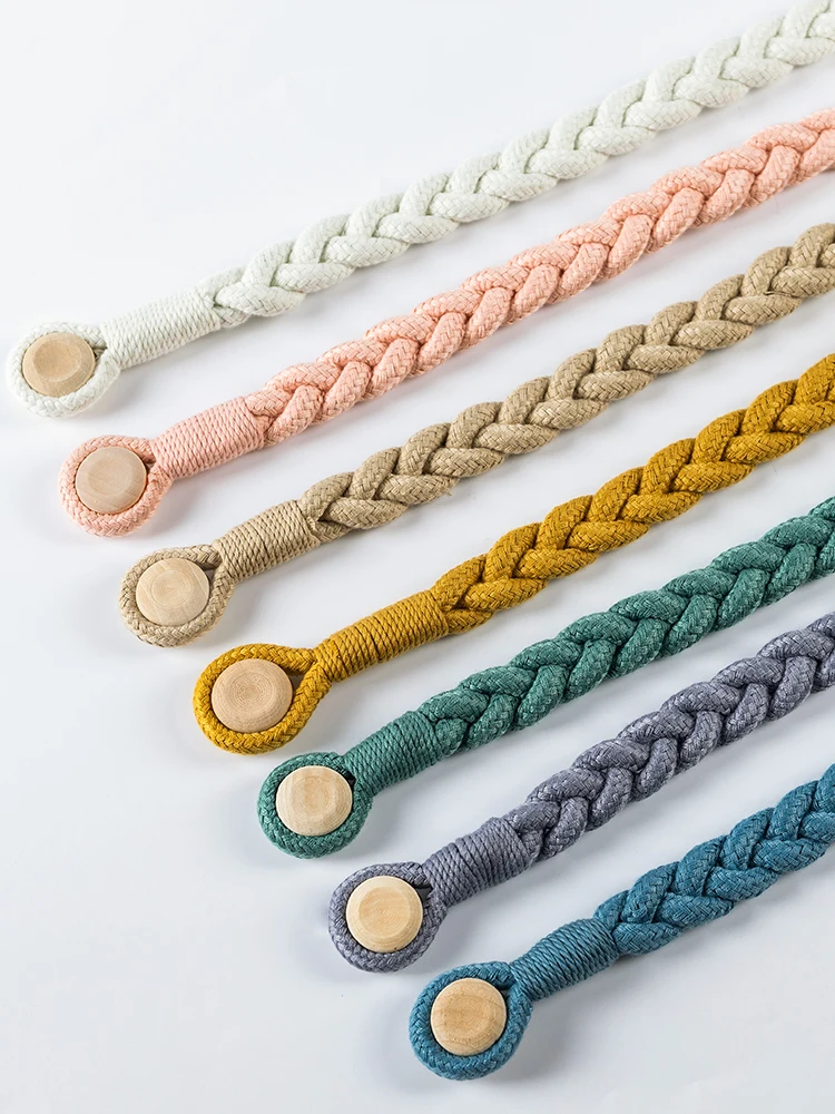 2PCS Modern Japanese Style Handwork Cotton Magnetic Curtain Buckle Straps Tieback Rope Decoration for Living Room Bedroom