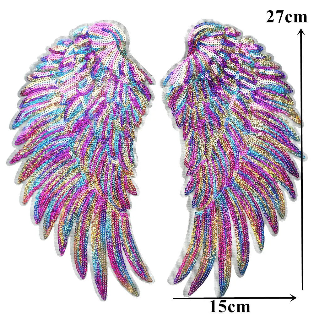 2PCS Rainbow Feather Wings Sequin Dreamy Sew Iron On Patches Embroidered Badges For Clothes DIY Appliques Craft Decoration